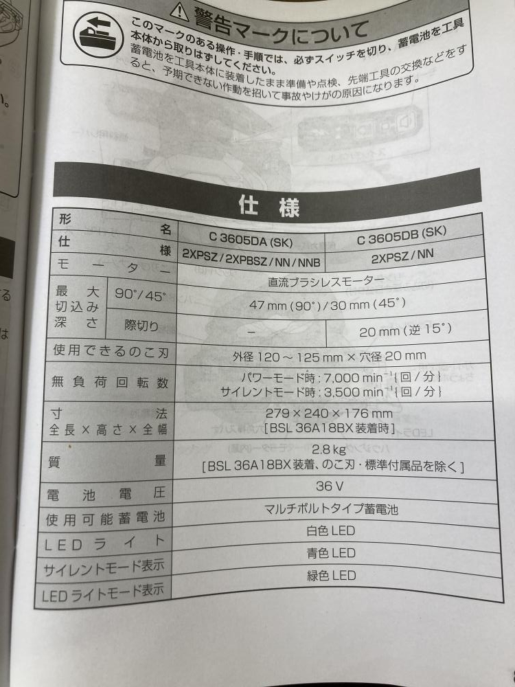 HiKOKI ハイコーキ ■商品名 36V125mmコードレス丸のこ ■型番 C3605DA(SK) |