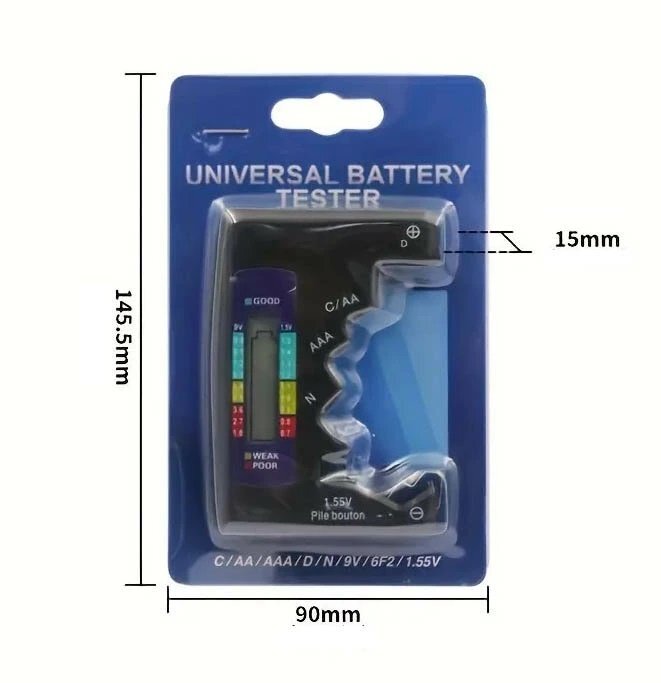 【 ここがポイント 】 ★商品内容:電池チェッカー ブラック 材料: absプラスチック/ステンレススチール 製品サイズ:92.5×65×13.8mm、重量32g。 ★測定可能電池:乾電池(アルカリ/マンガン):単1形・単2形・単3形・単4形・単5形・角形9V・ボタン電池(1.55V):SR44W・SR44SW・SR44(G13)・LR44 等1台で複数の電池サイズを測定できます。 ★電源を必要とせず、電池を対応する電池スロットに挿入するだけで、電池の残量をすぐに読み取ることができます。 ★数値表示と違い、デジタルレベルゲージで電池残量が簡単に読み取れます。 表示は3色に分かれており、赤は電池交換の必要性、黄色は電池残量が少ないこと、緑は電池が満充電であることを意味し、バッテリーチェッカーがあれば、ご家庭で使用されているほとんどのバッテリーの残量が一目でわかります。 ★家庭、オフィス、車内、旅行先など、カードタイプなのでかさばらず、手のひらサイズでいつでもどこでも電池残量を測定できます。 【ご注意】 ※プラス極とマイナス極の逆接にお気を付け下さい。長時間使用しないときは電池を取り外してください。 ※輸入品のため、予告なくロットにより若干のデザインの違いや、パッケージがない場合がございます。未使用品に間違いございません。