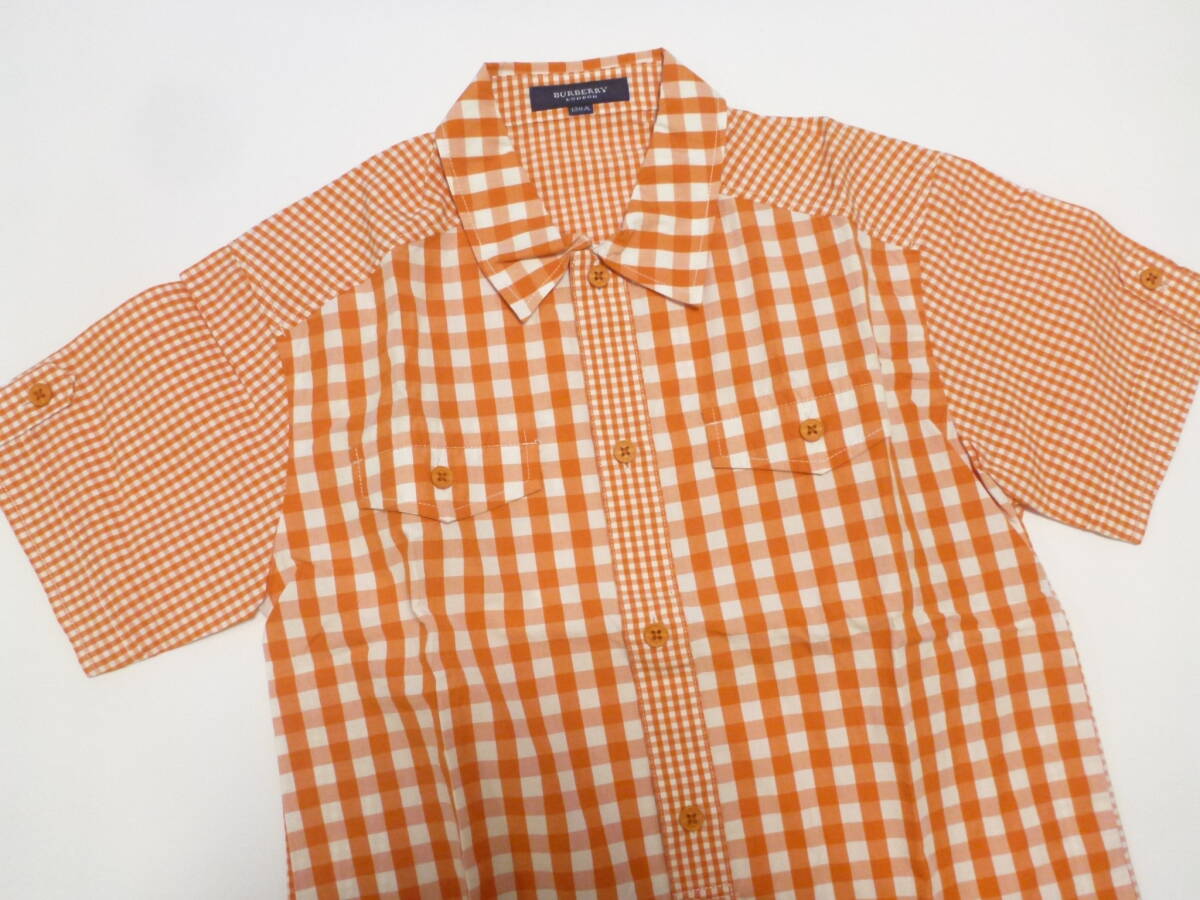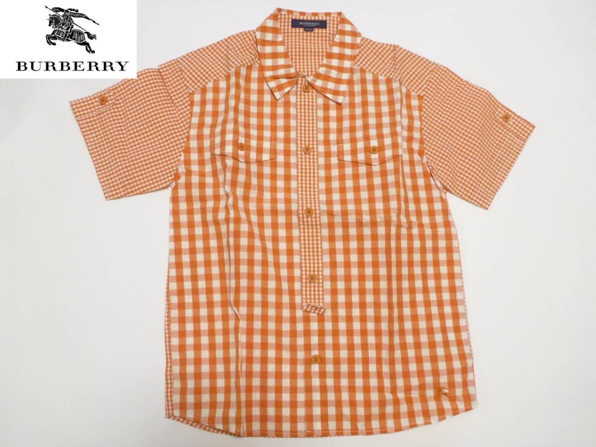 超美品 Burberry London バーバリーロンドン★オレンジ×白 ロゴ刺繍 半袖シャツ 130