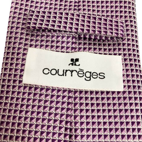 クレージュ courreges ネクタイ レギュラータイ 総柄 絹 シルク 光沢 紫 パープル ライトパープル シルバーマルチカラー メンズ