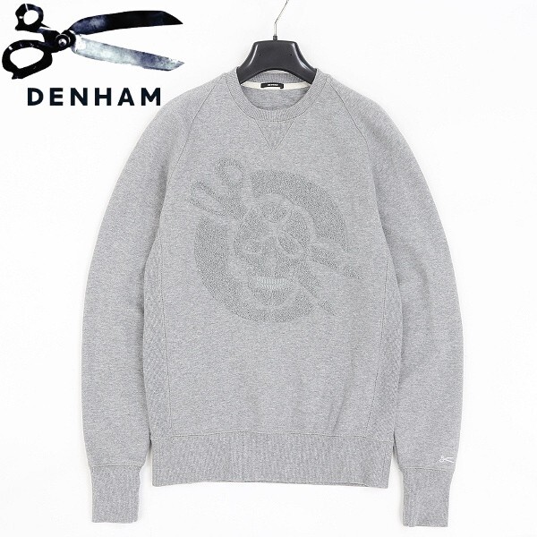 ◆DENHAM デンハム スカル パイル刺繍 裏起毛 コットン スウェット トレーナー グレー XS | |