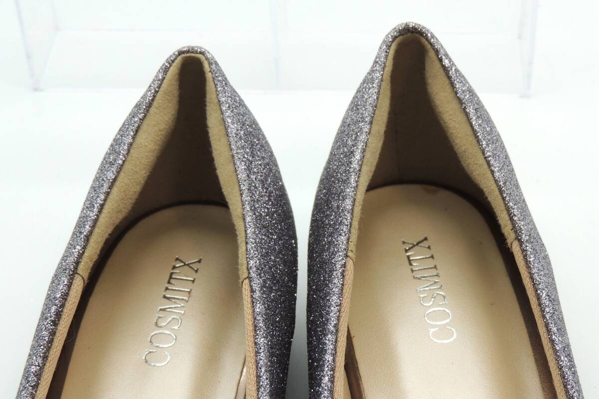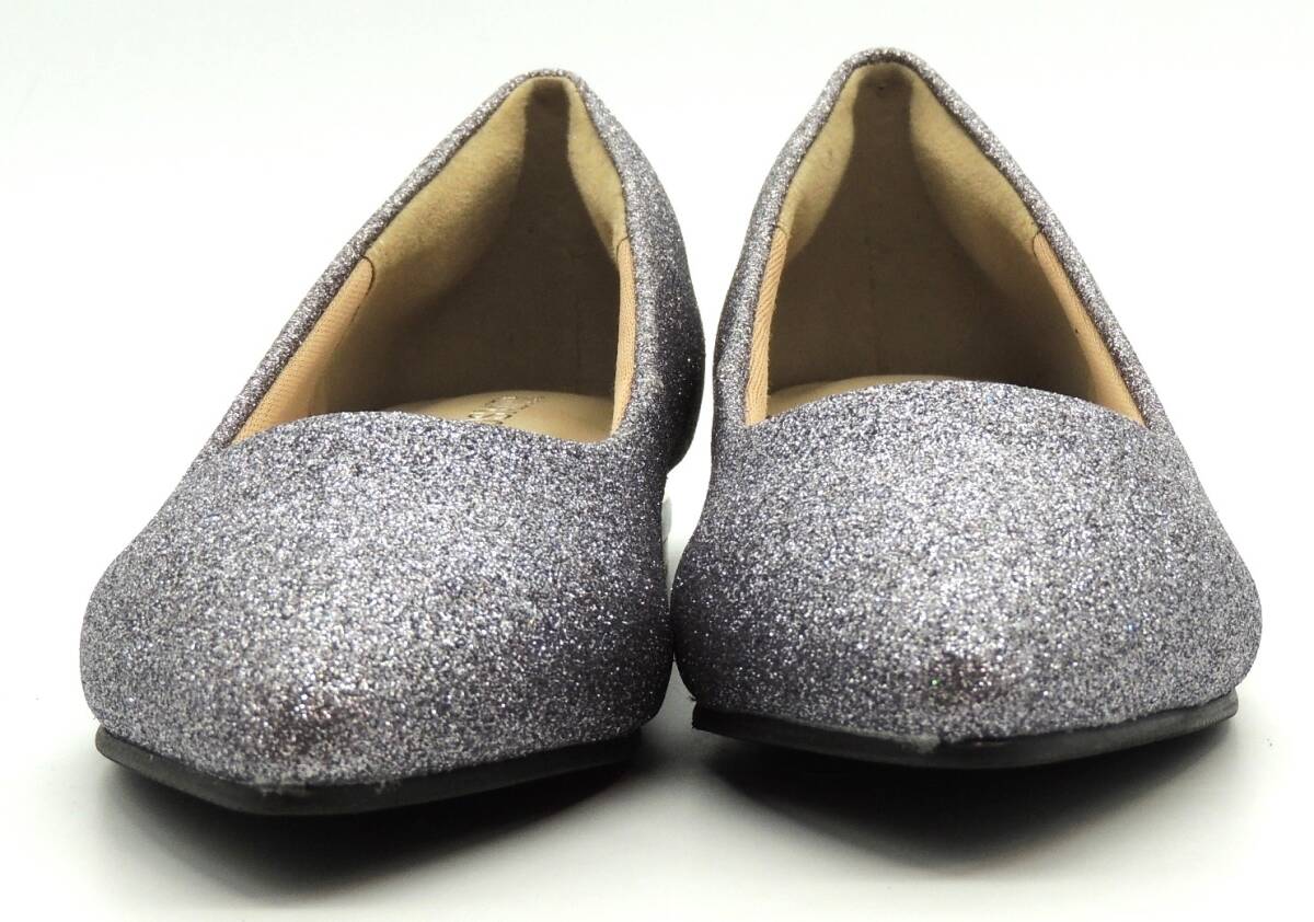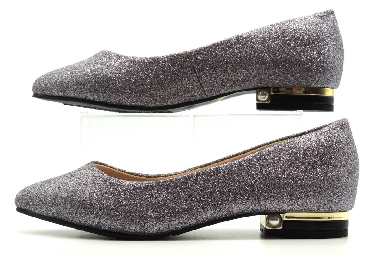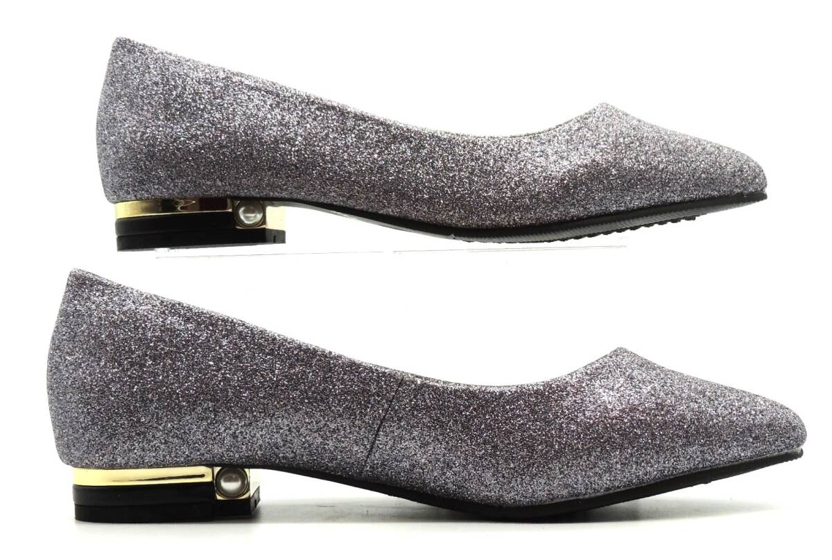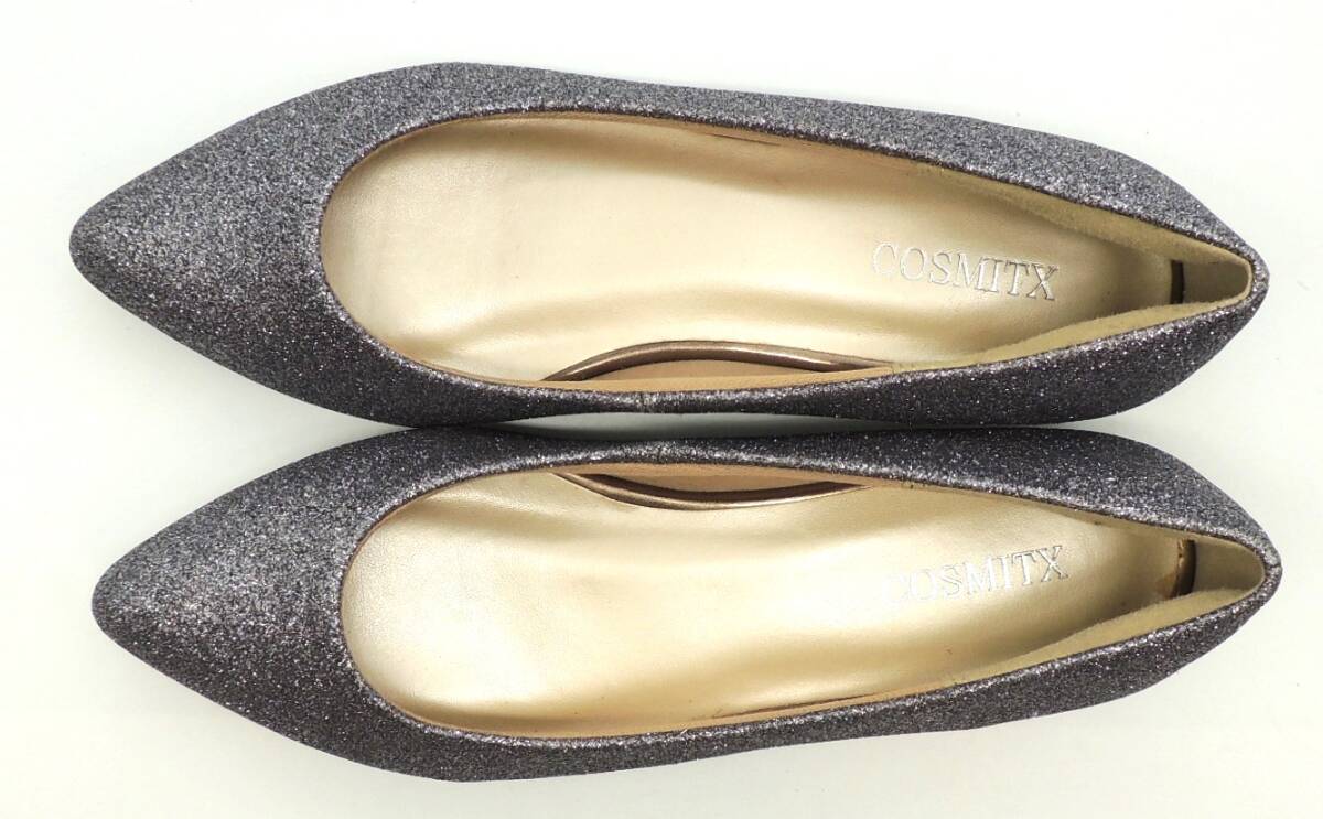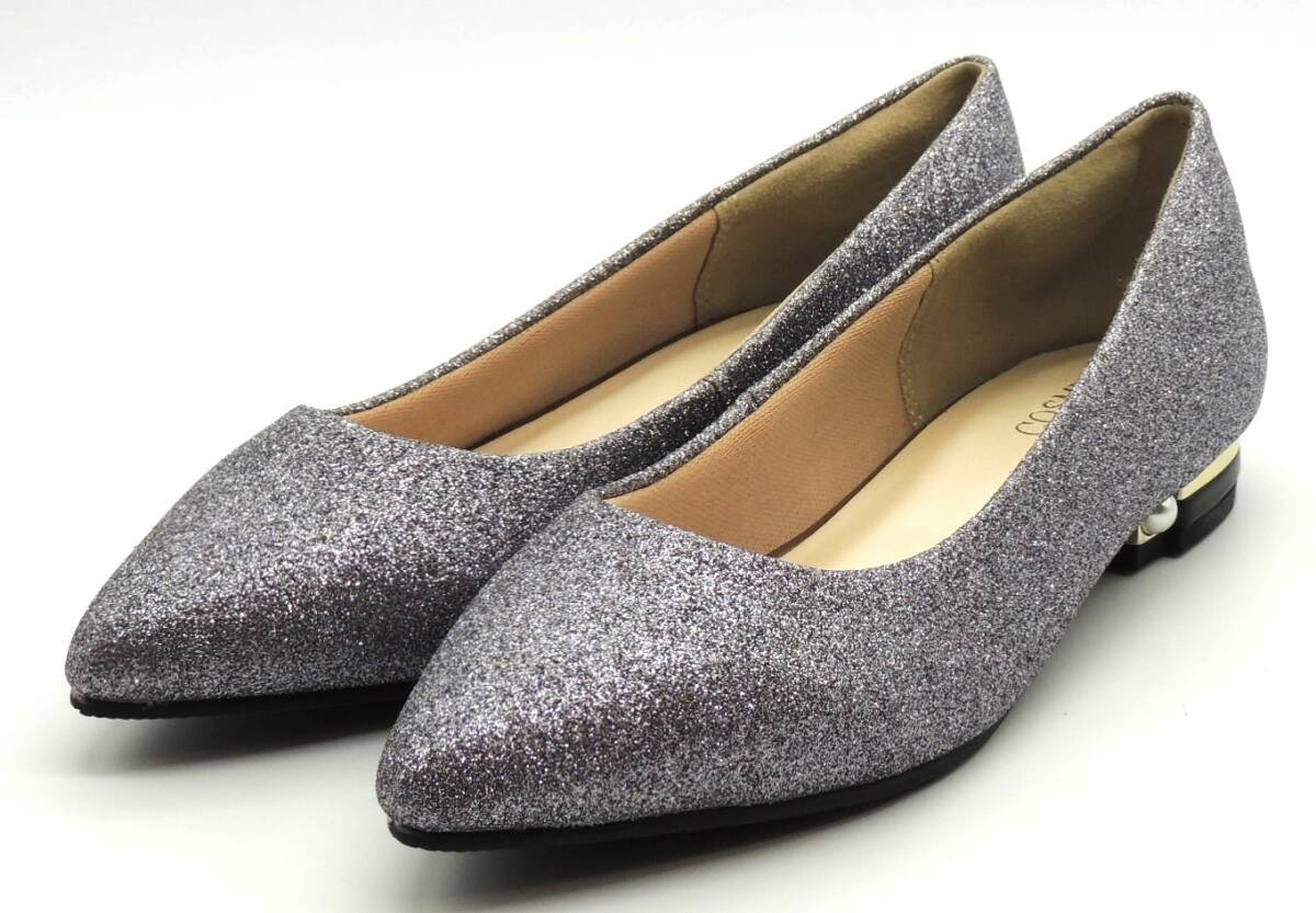 秋先取り レディ-ス パンプス グリッター メタリック ぺたんこ キラキラ ラメ ガンメタ S(22.0-22.5cm)