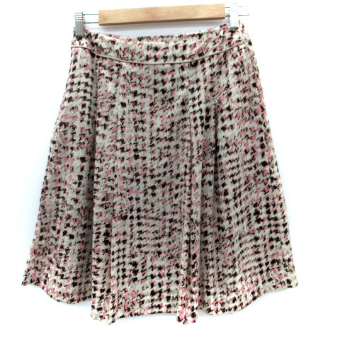コムサイズム COMME CA ISM フレアスカート ミモレ丈 総柄 M ベージュ ピンク /SM4 レディース