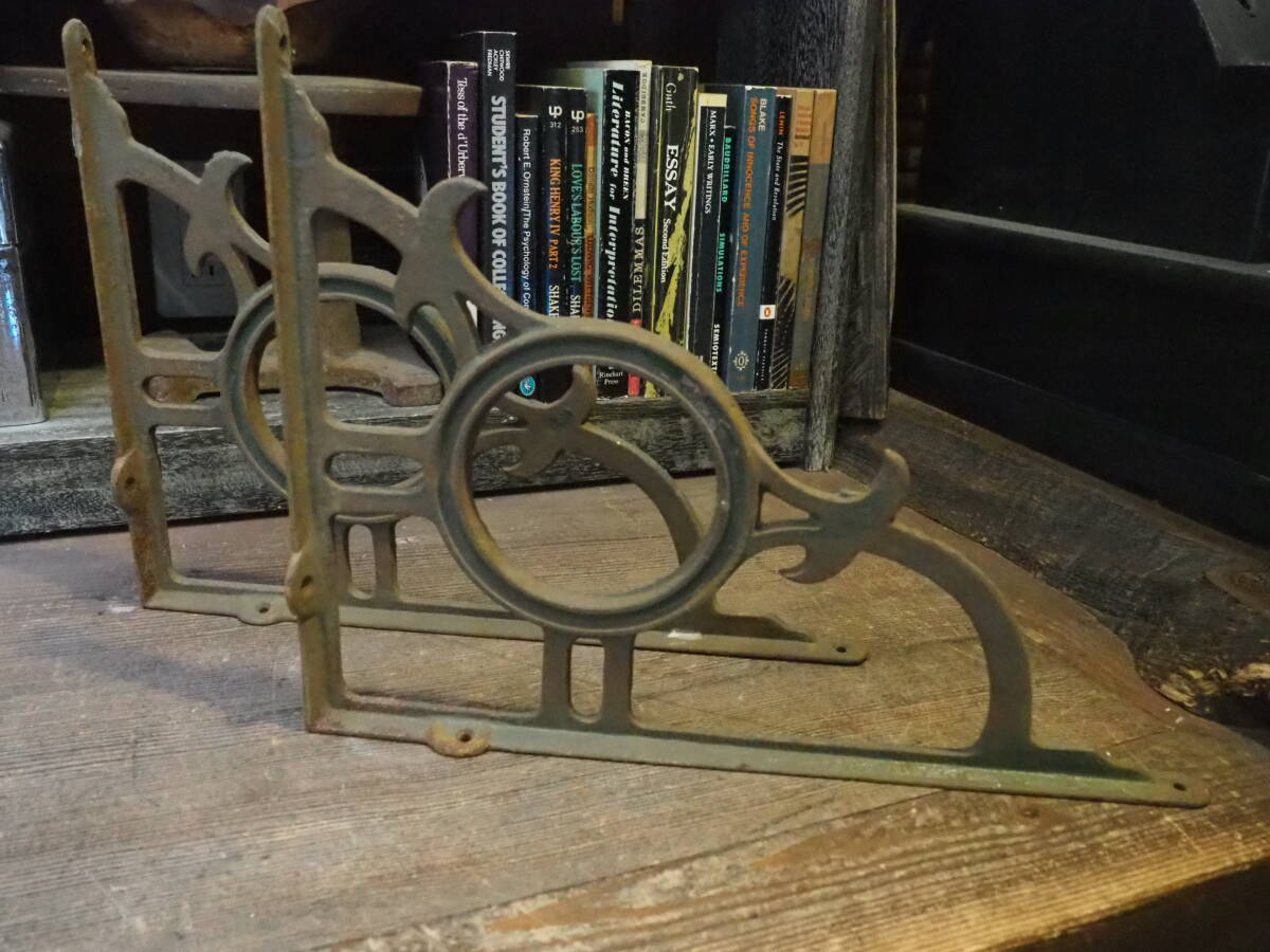 【重厚なアイアン棚受け2個】鉄製ブラケット古道具アンティーク骨董収納スペースDIY雑貨インテリア物置リフォーム壁面インダストリアル建具
