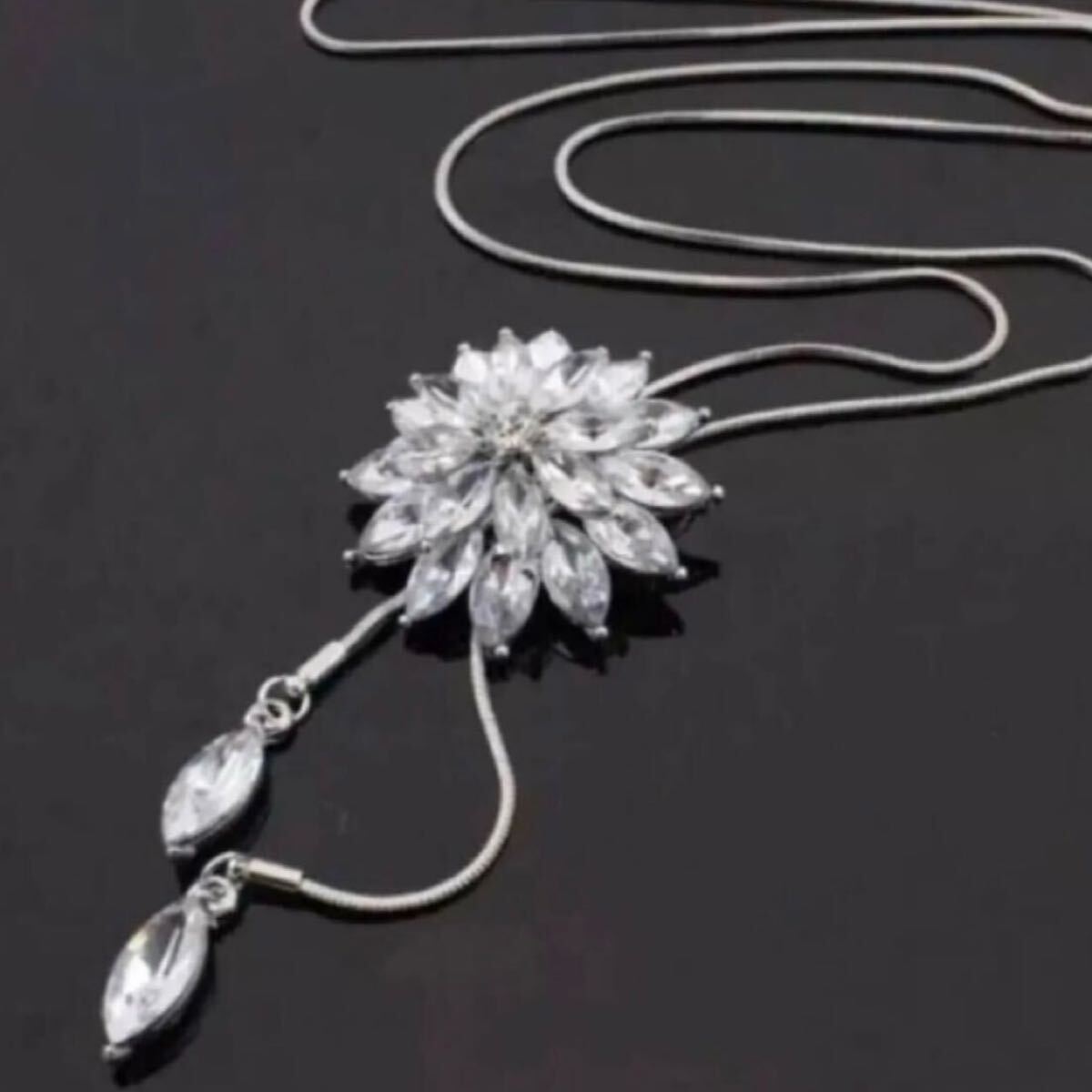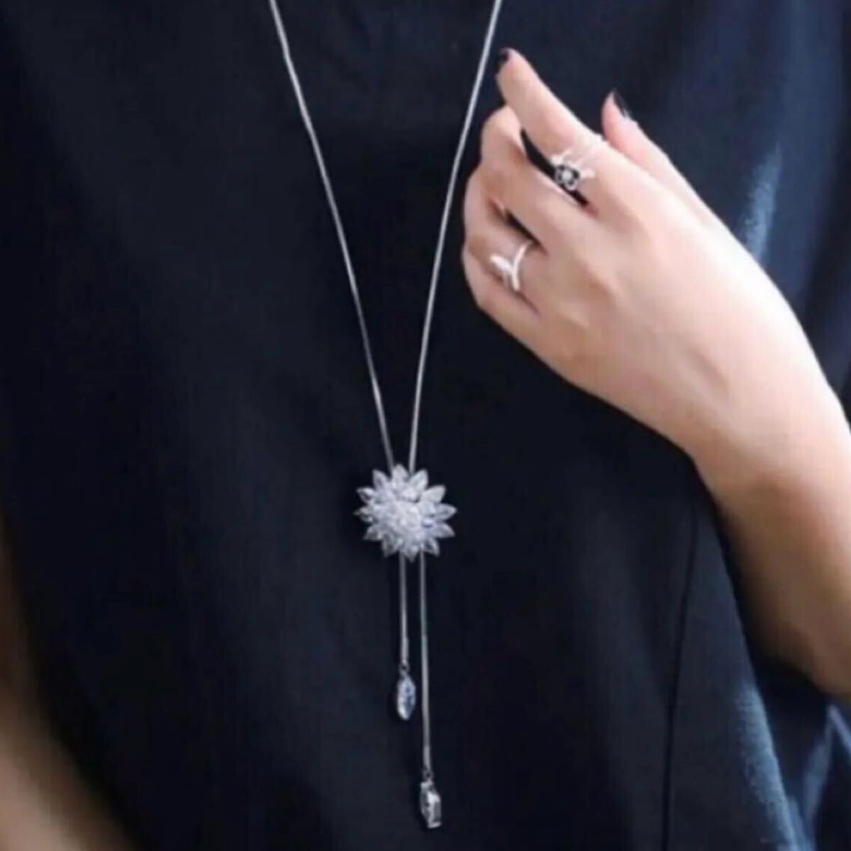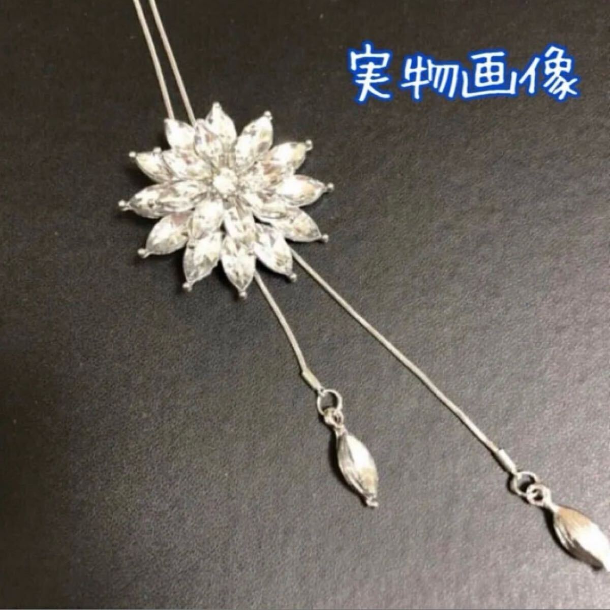 ロングネックレス ネックレス ペンダント ジルコニア フラワー 結晶 シルバー 調整可能