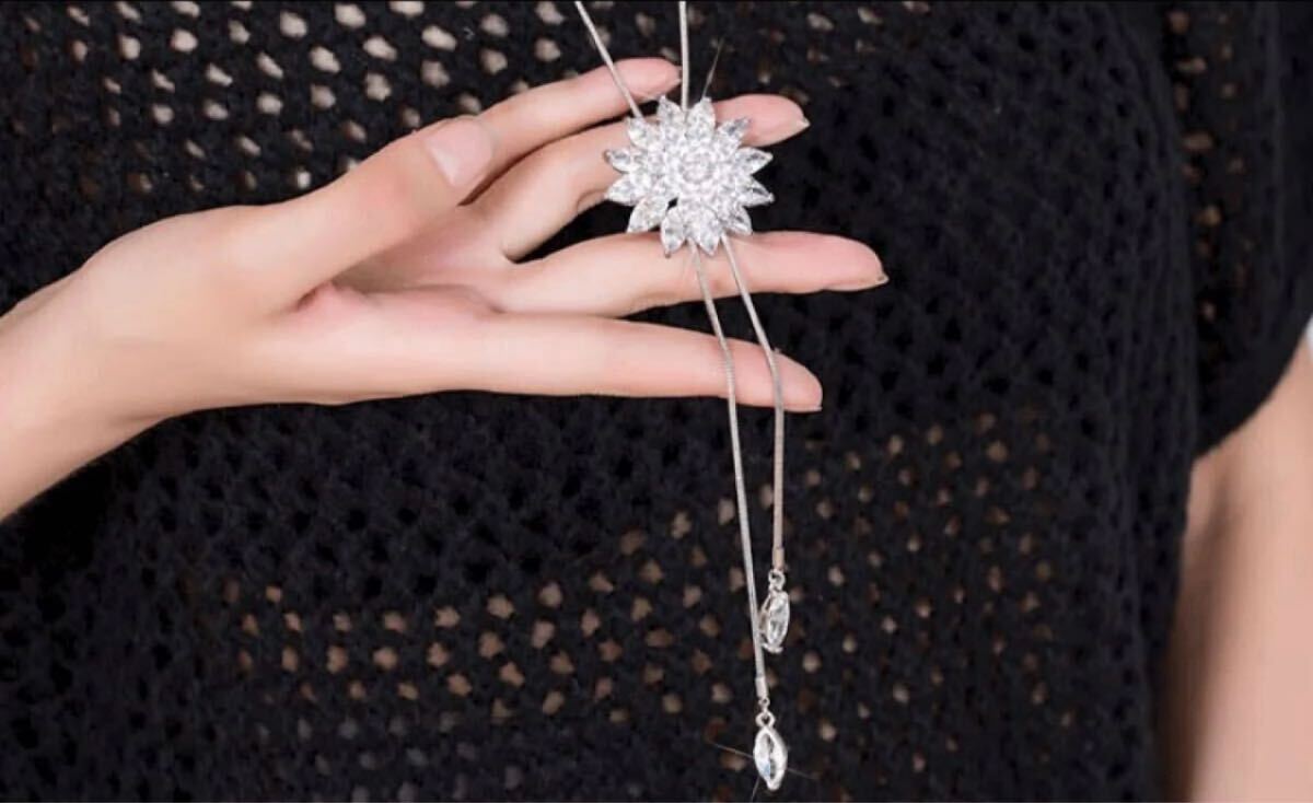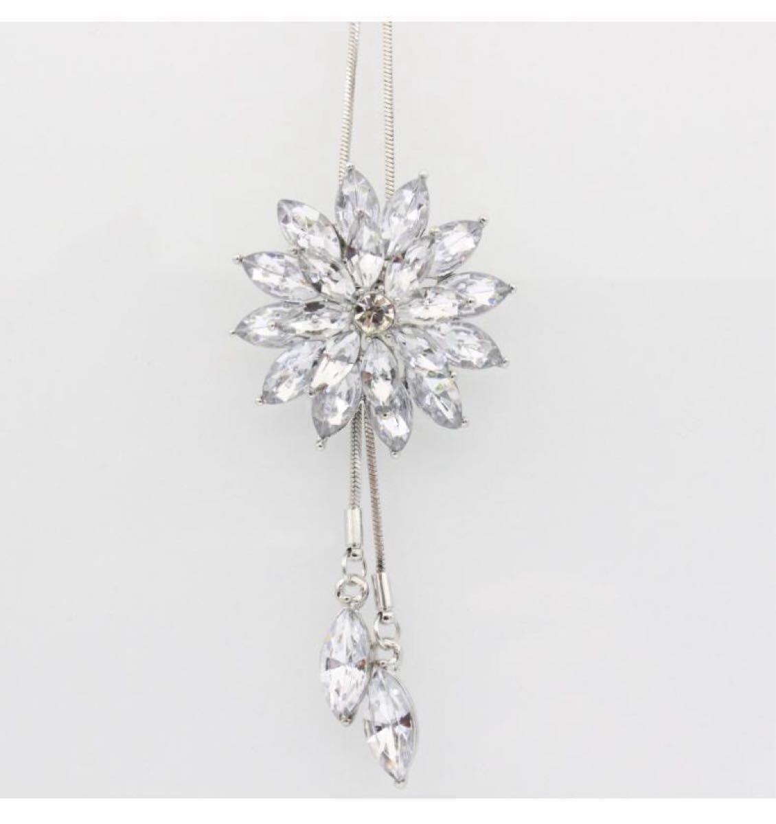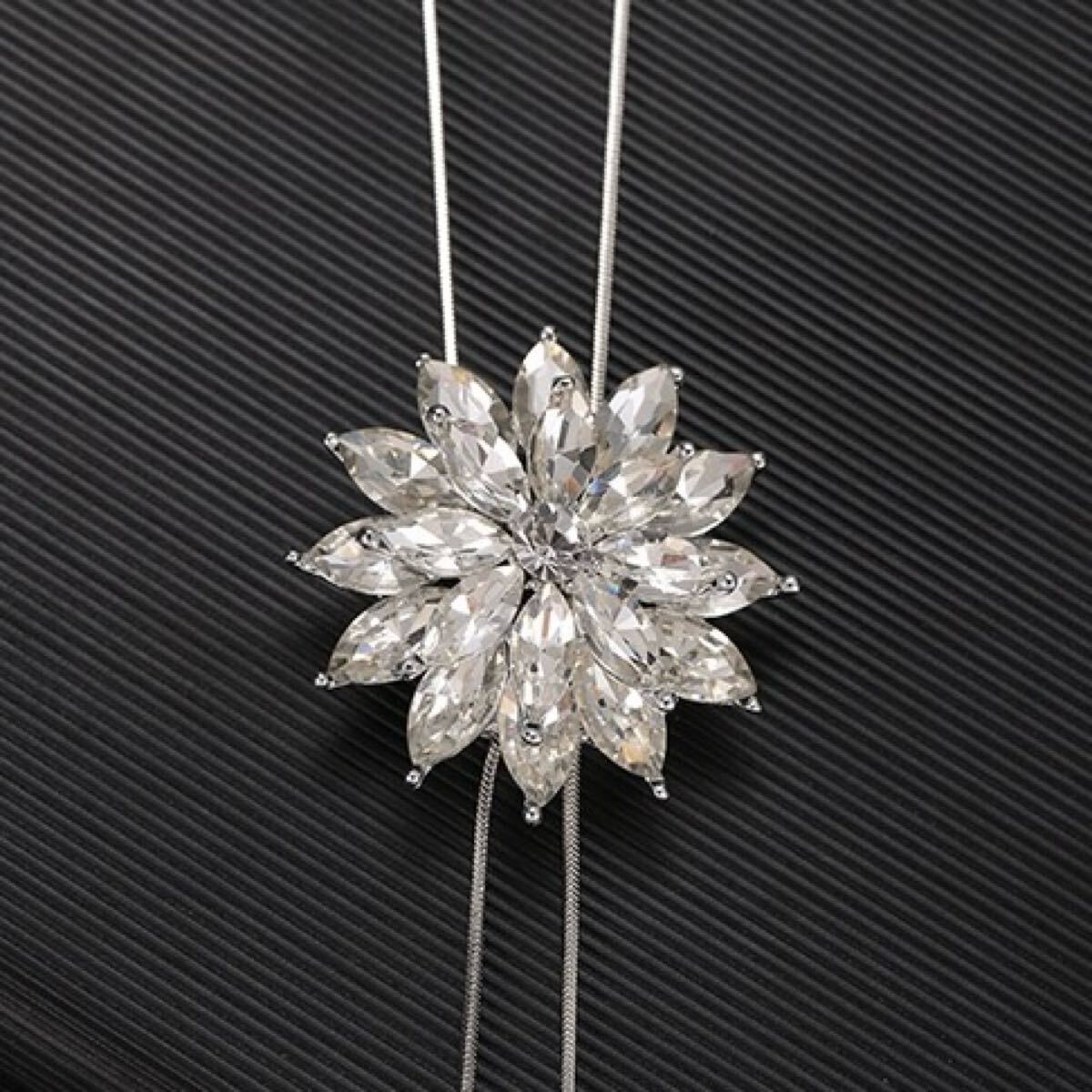 ロングネックレス ネックレス ペンダント ジルコニア フラワー 結晶 シルバー 調整可能