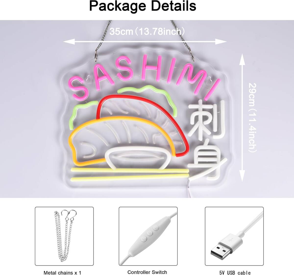 ネオンサイン 35x29cm 刺身ネオンサイン 多階段調光可 LED SASHIMI 店舗インテリア レストラン 日本料理 海鮮料理 寿司屋 和食