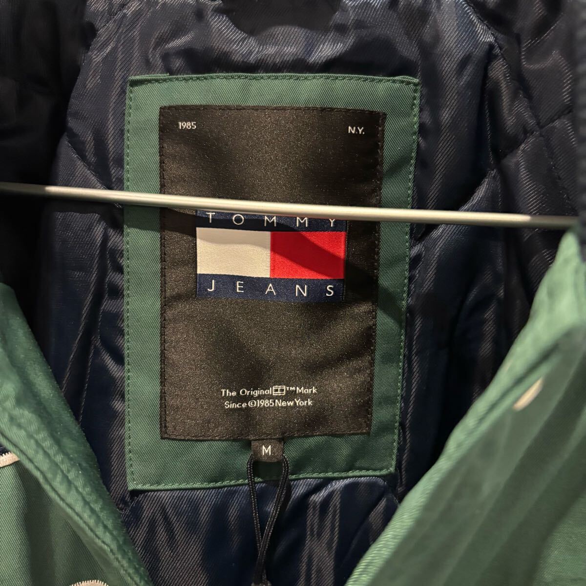 胸元に大胆に刺繍された「Tommy」ロゴが目を引く、クラシックな1着。