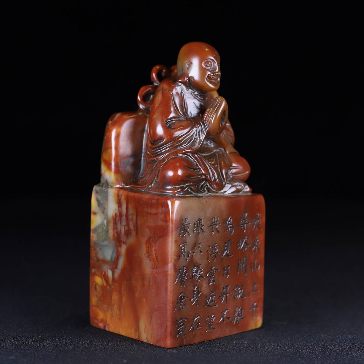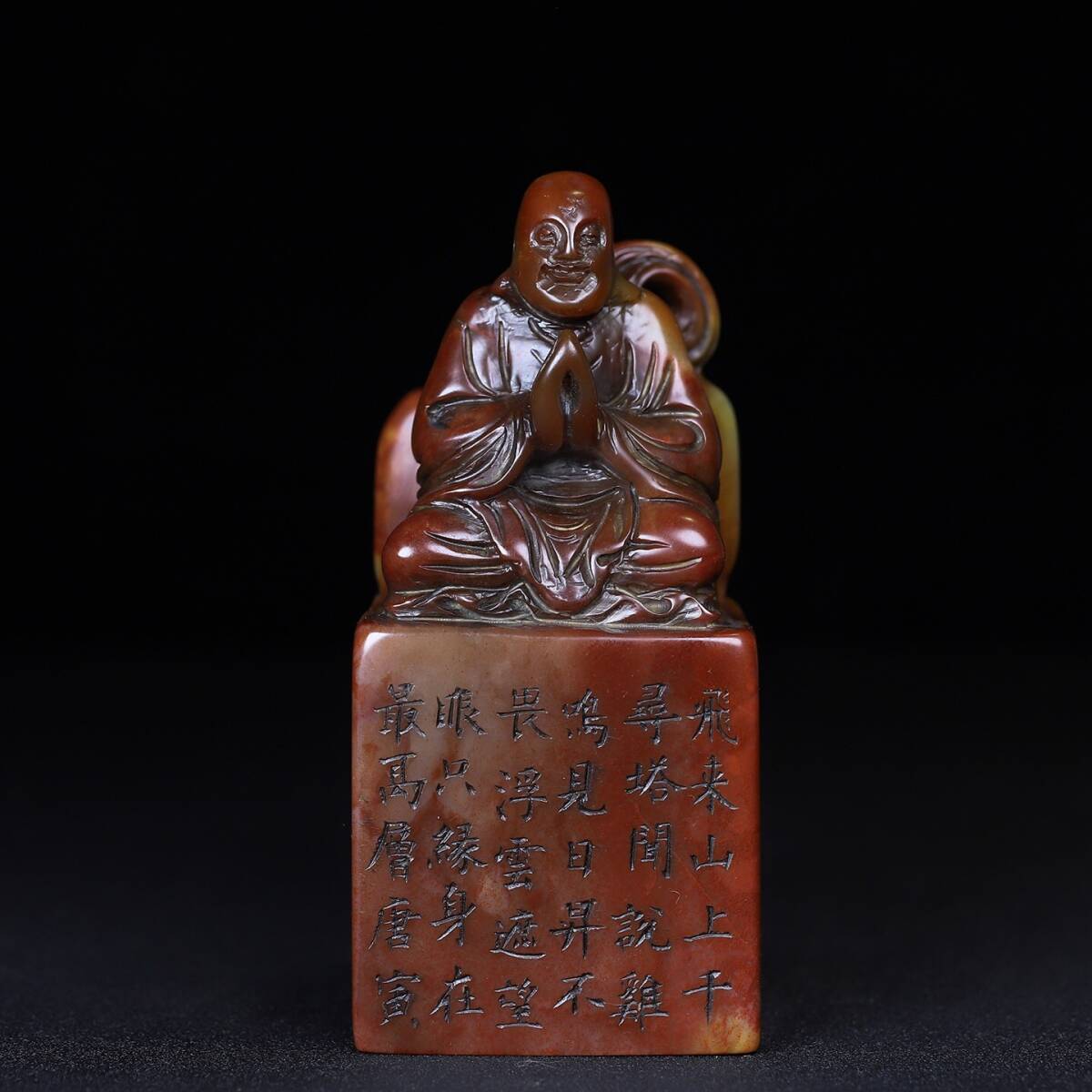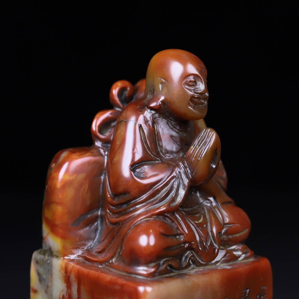 【超珍館蔵】寿山石 芙蓉石 細密彫 羅漢印章 文房具 書道品 古賞物 古美術品 稀少珍蔵品