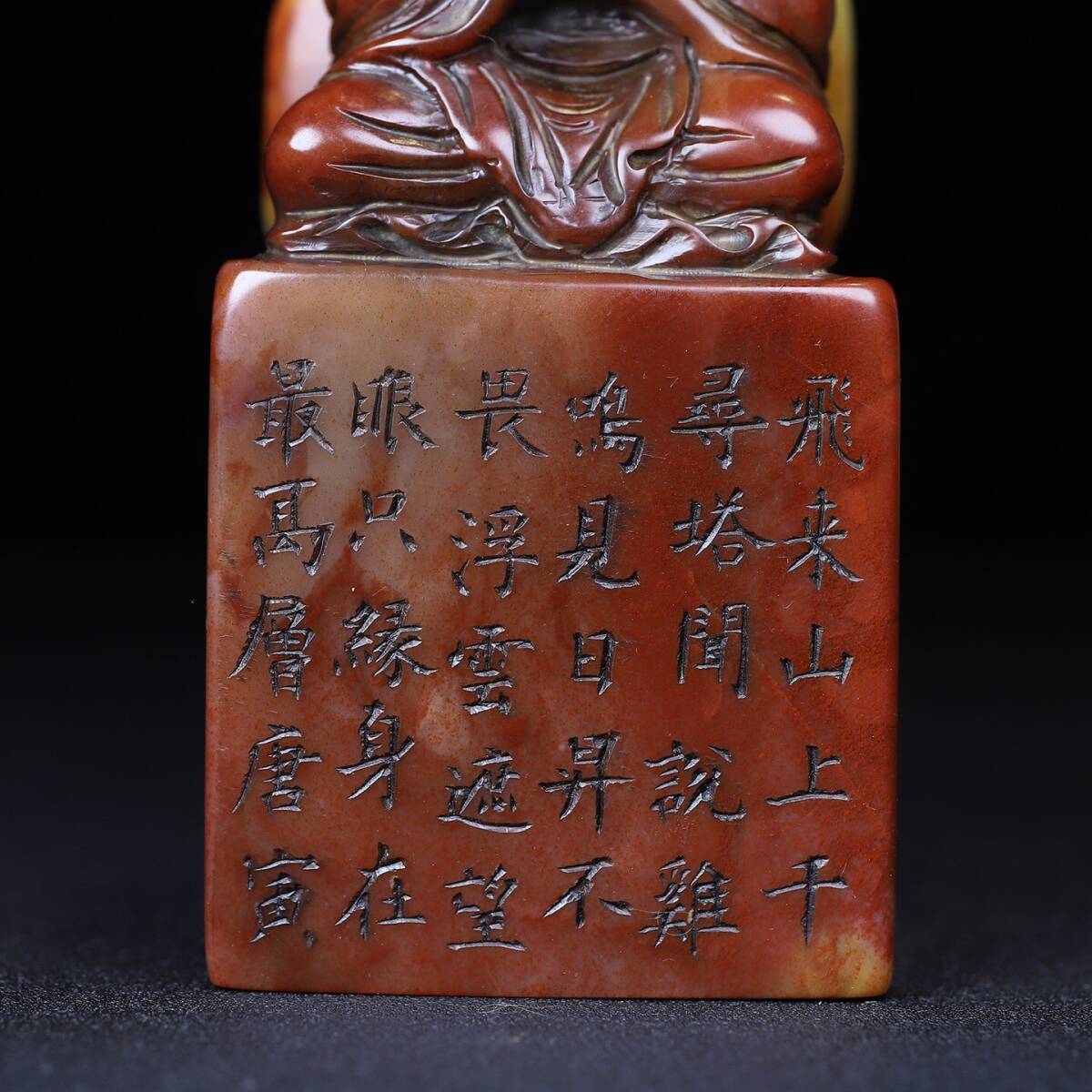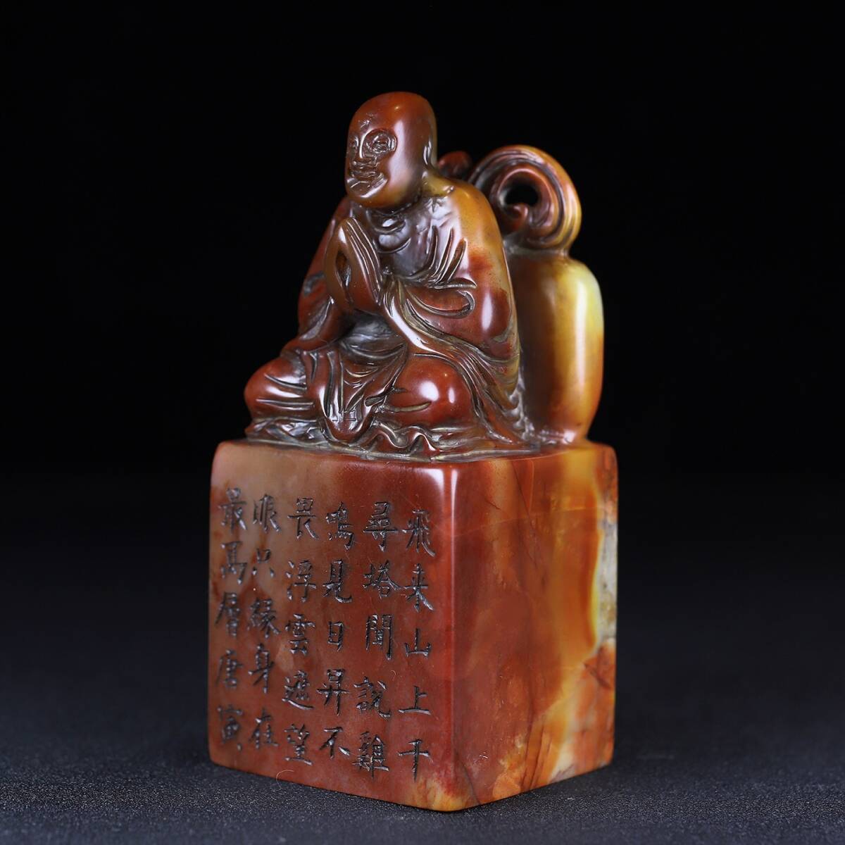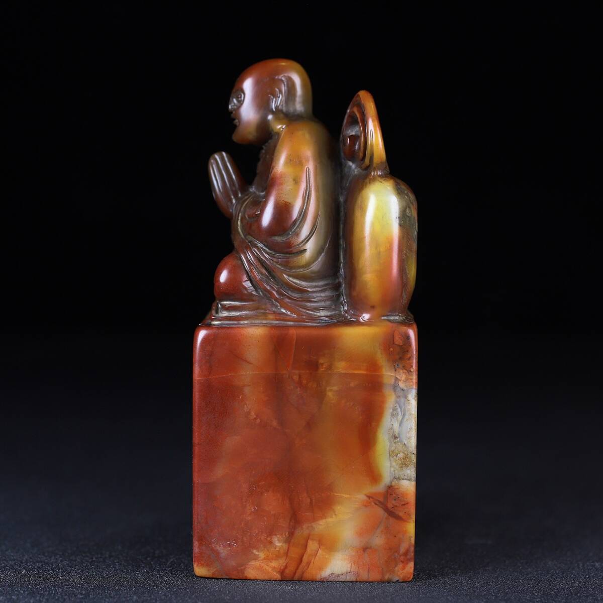 【超珍館蔵】寿山石 芙蓉石 細密彫 羅漢印章 文房具 書道品 古賞物 古美術品 稀少珍蔵品