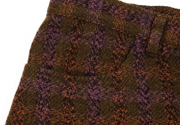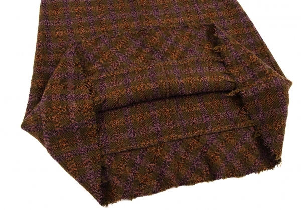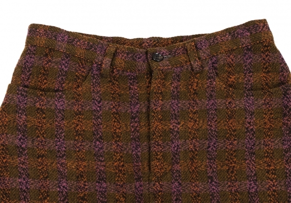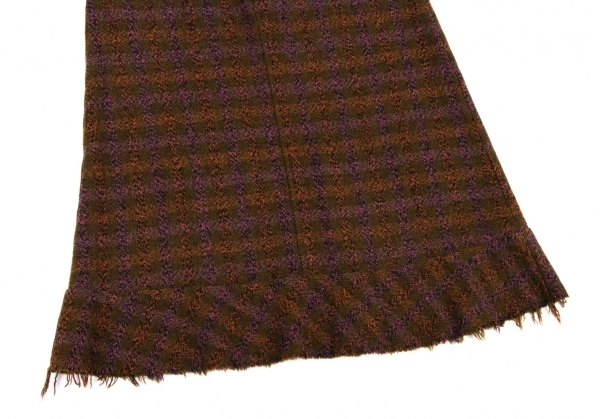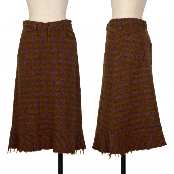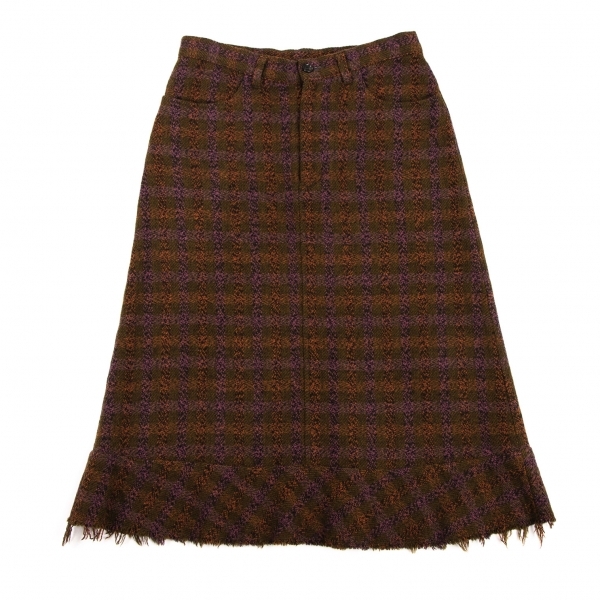 | トリココムデギャルソンtricot COMME des GARCONS 裾断ち切りチェック織りスカート 茶S |