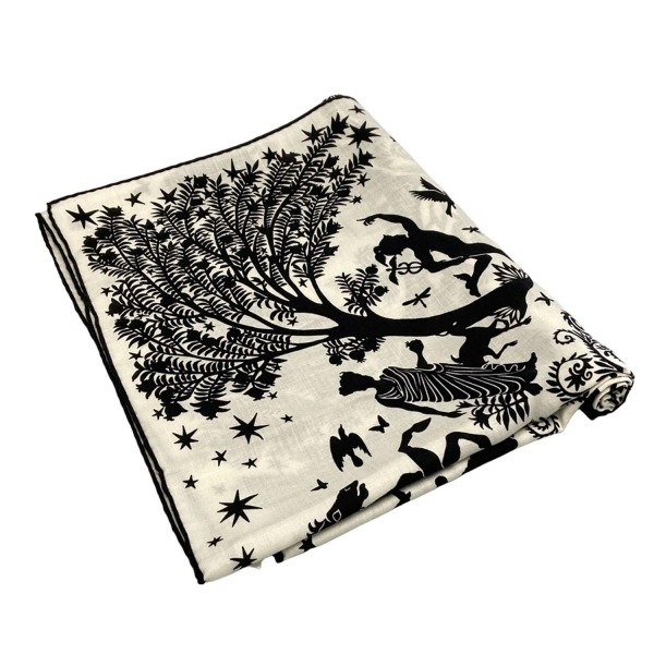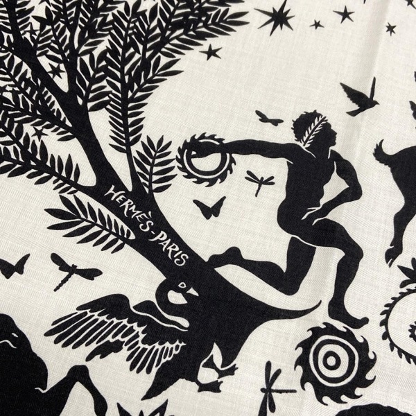 エルメス HERMES ストール(ショール) H244177S 11 カレジェアン/ショール カレ140 カシミヤ、シルク ブラン×ノワール(白×黒) 美品