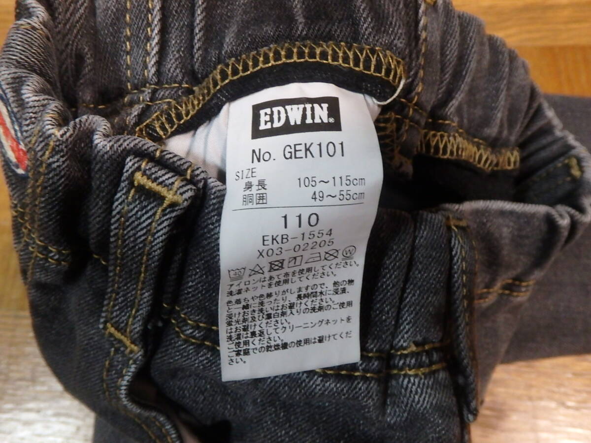 ★EDWIN エドウィン〓キッズ ブラックデニムパンツ KIDS 裏起毛〓110