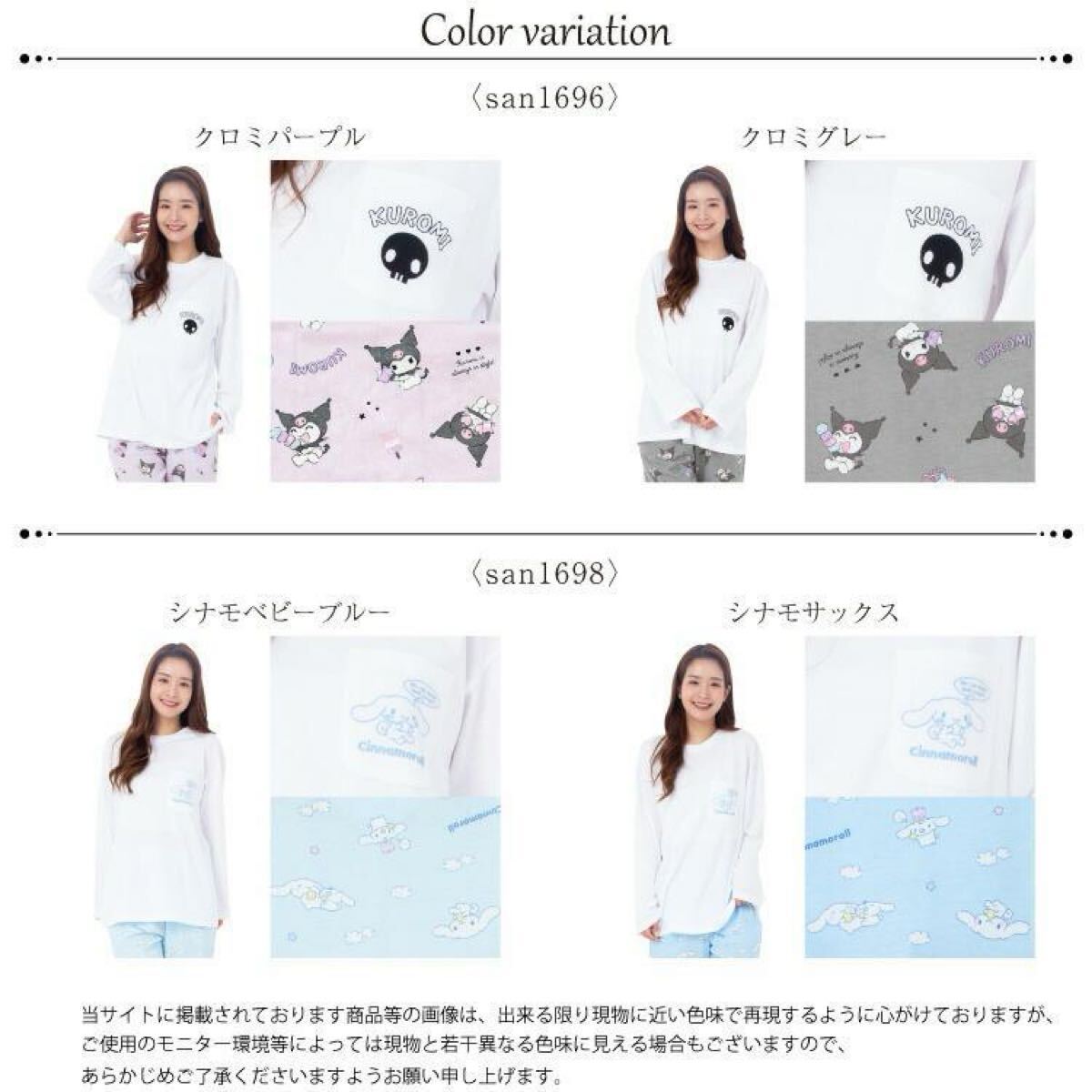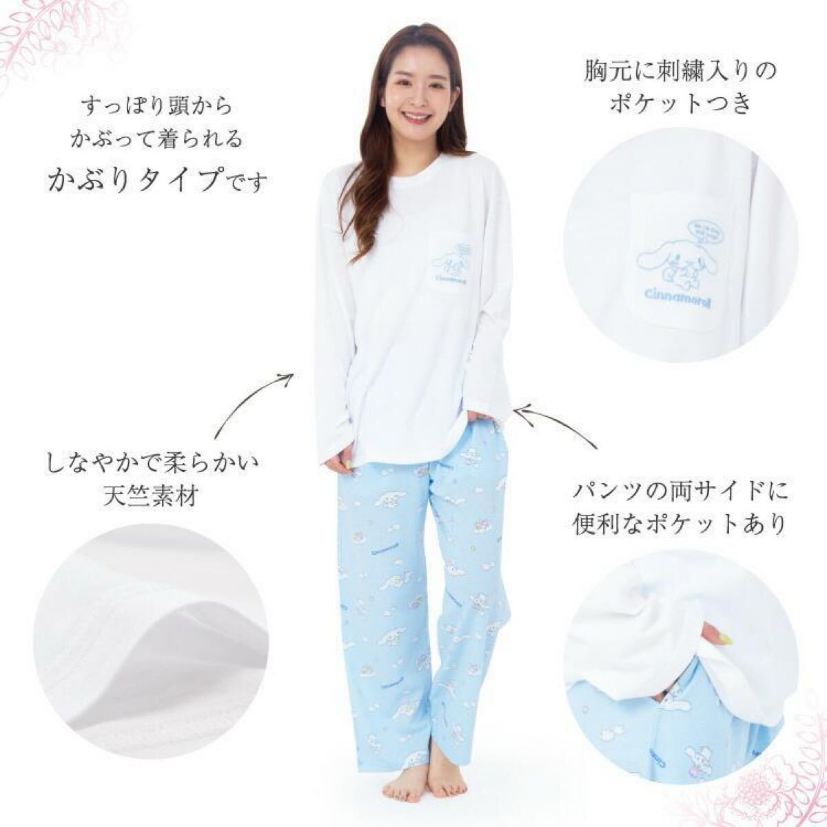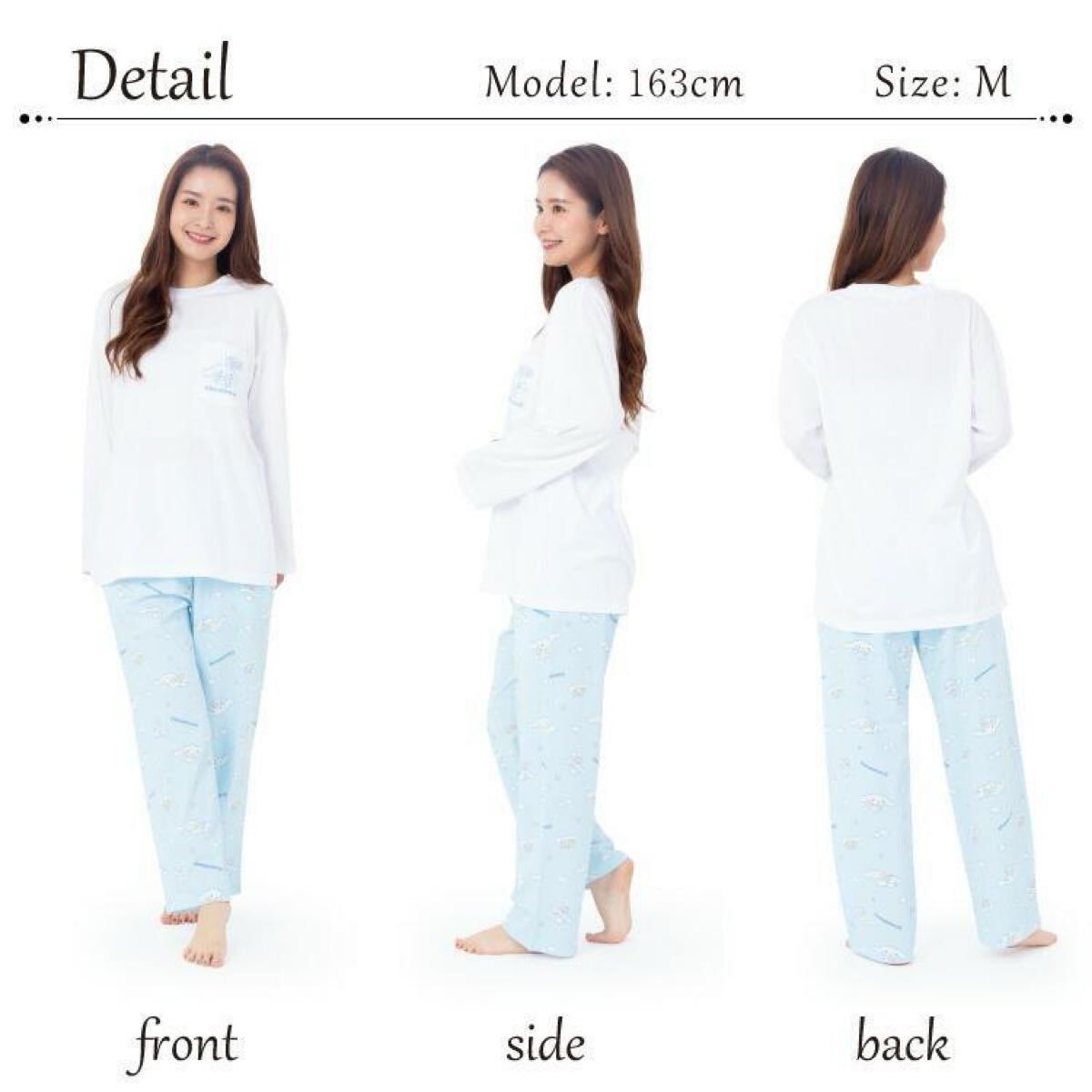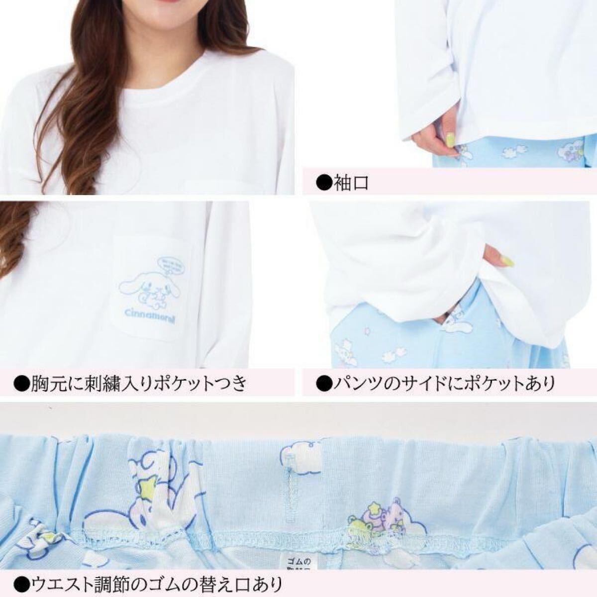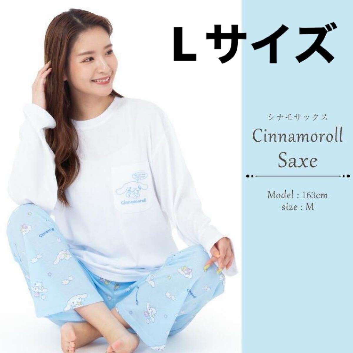 新品64093 Lサイズ サックス シナモロール シナモン レディース長袖パジャマ 天竺素材 長袖Tシャツ&長ズボン ルームウエア部屋着サンリオ
