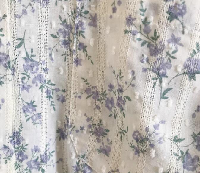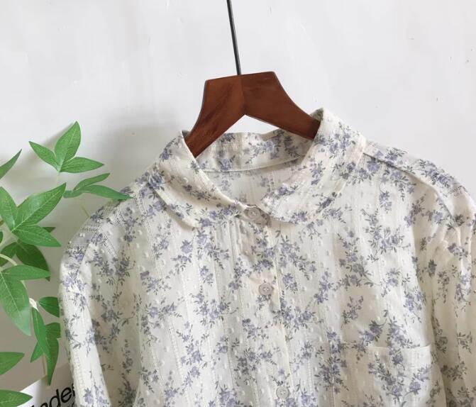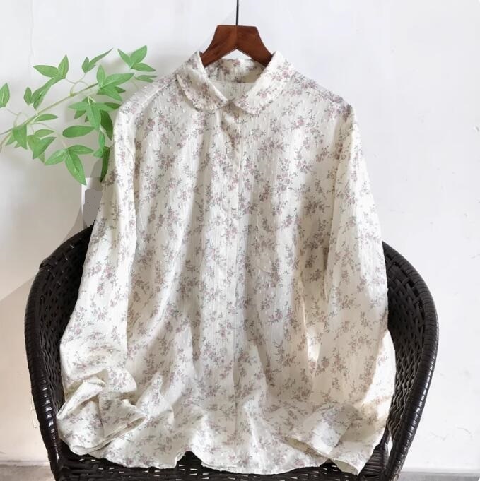 新品チュニック ワイシャツ 織り込みドット柄 爽やかなプリント花柄 綿100% ゆったり オシャレ フリーサイズ ナチュラル