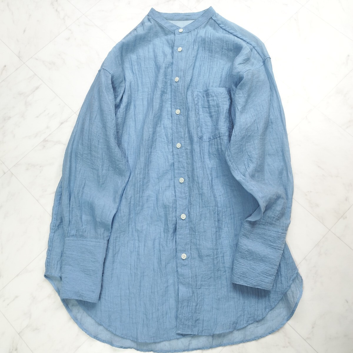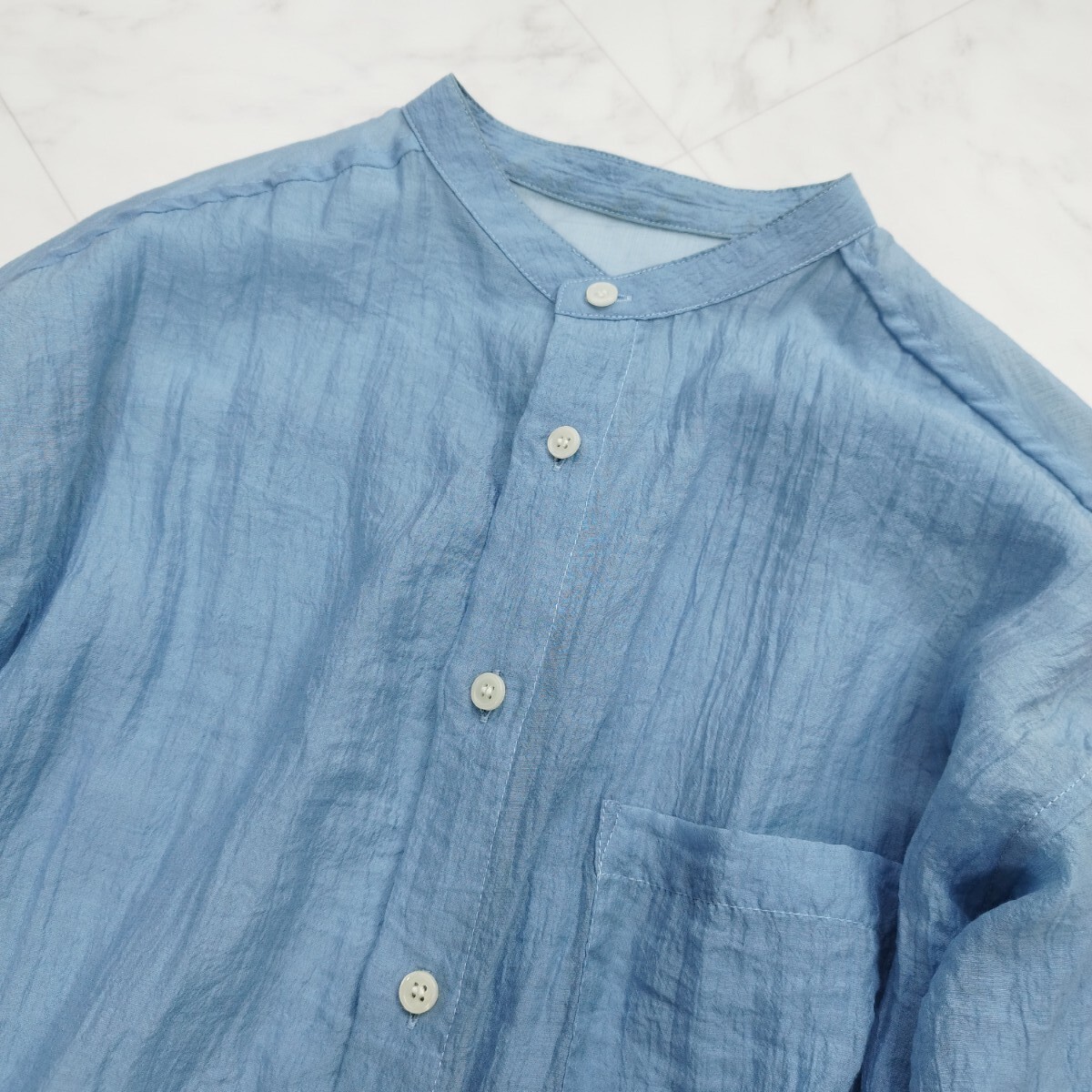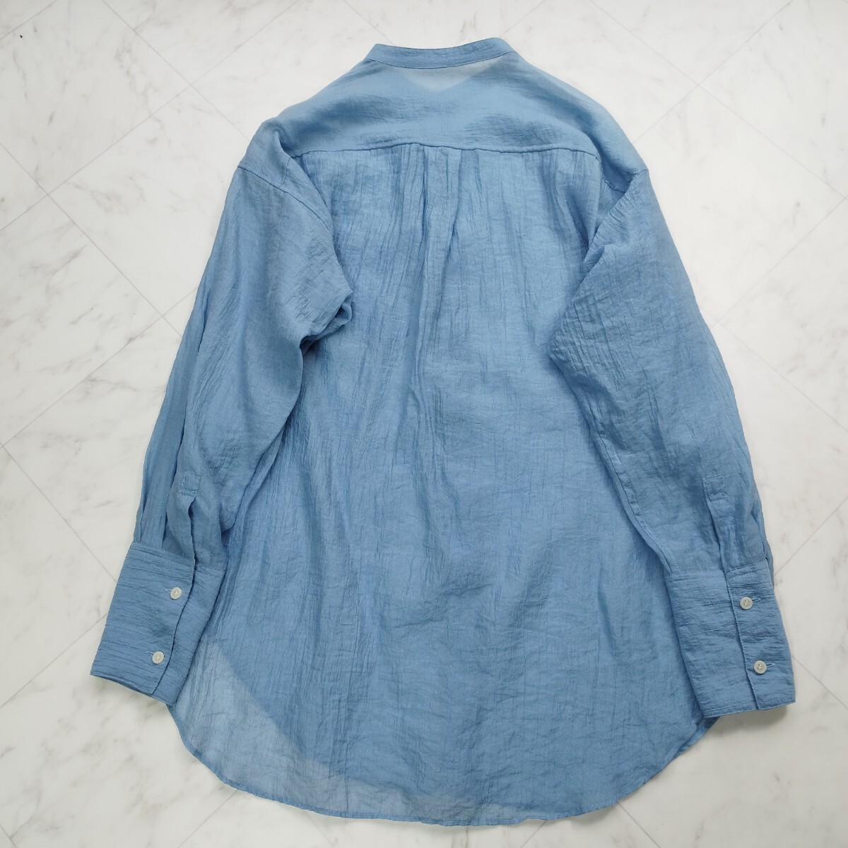 美品 フリークスストア バンドカラー シアーシャツ ライトブルー 青 ゆったり