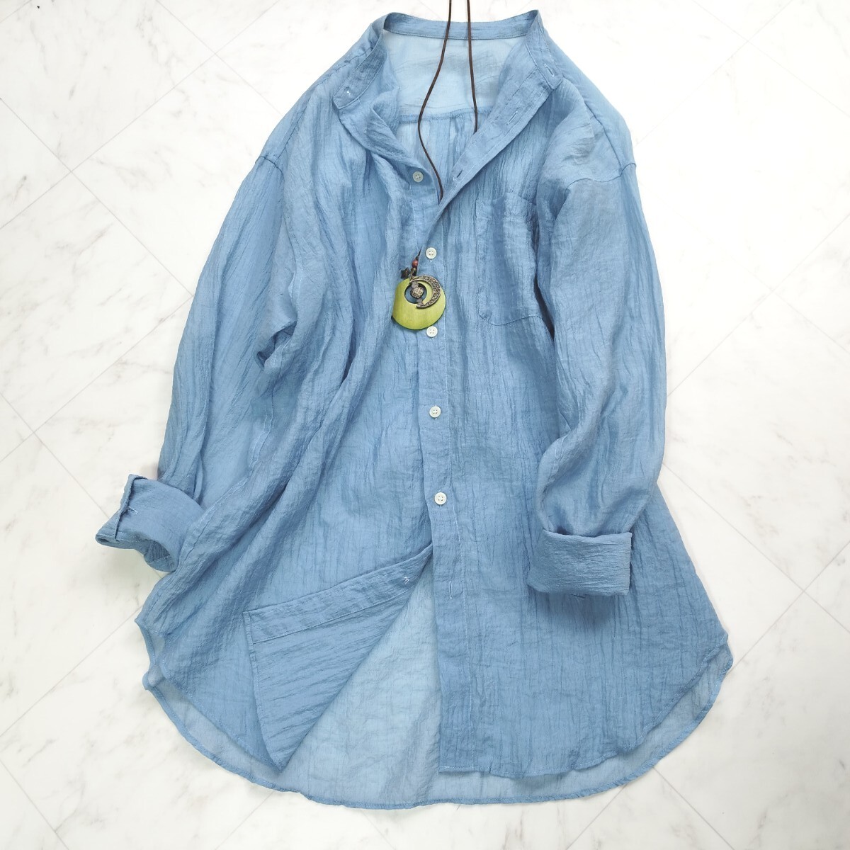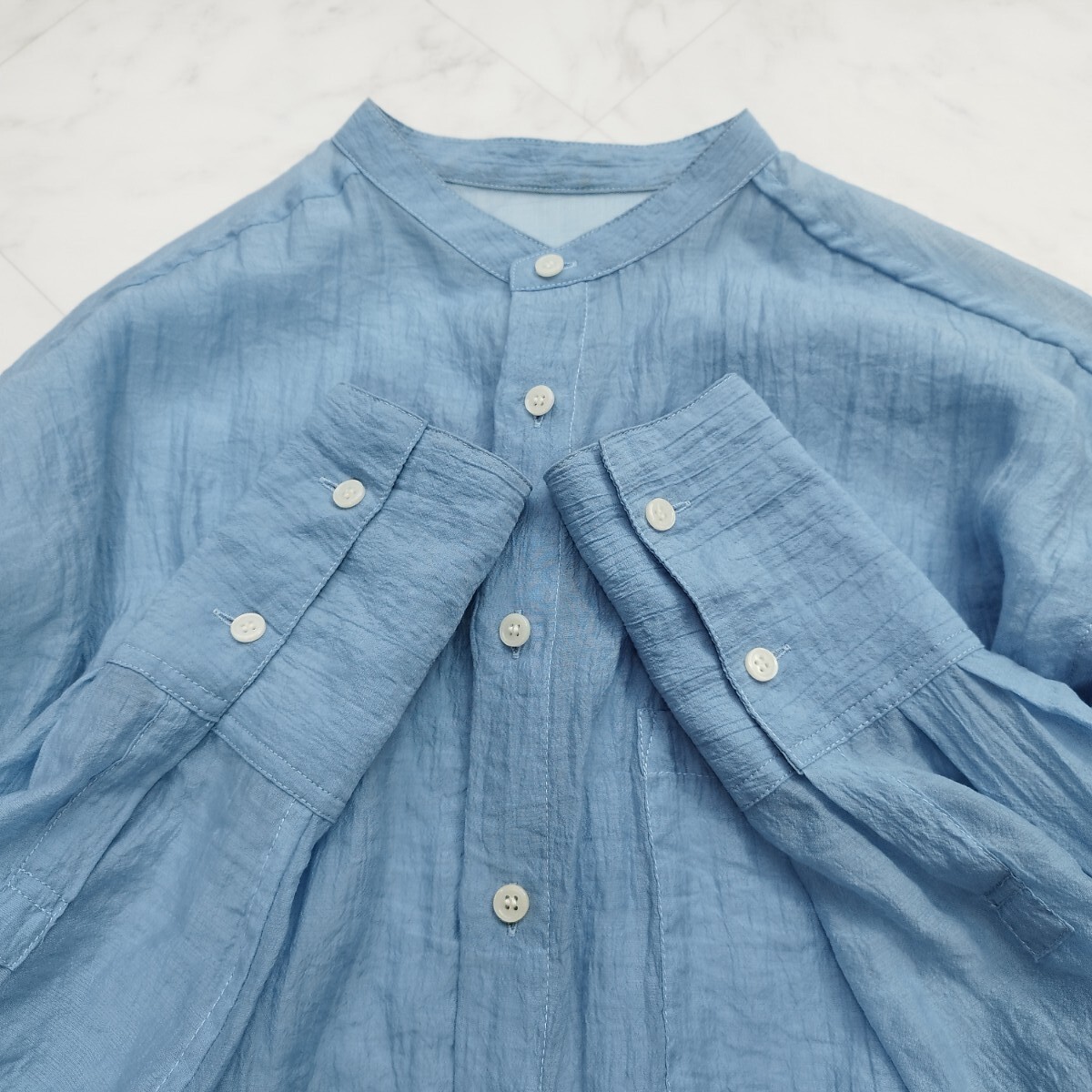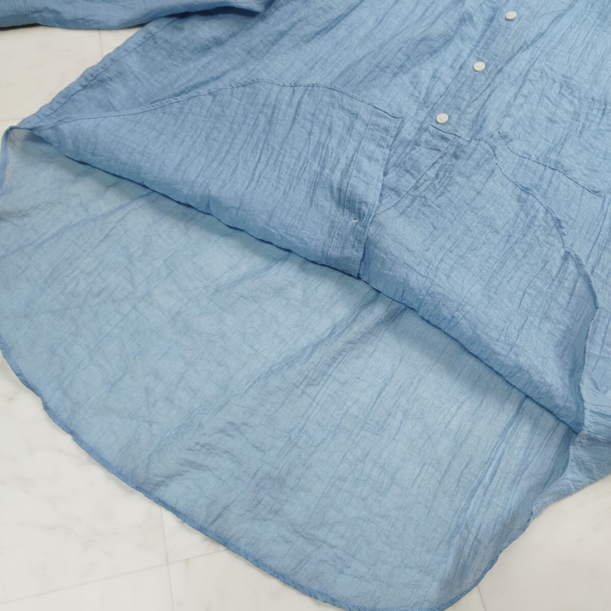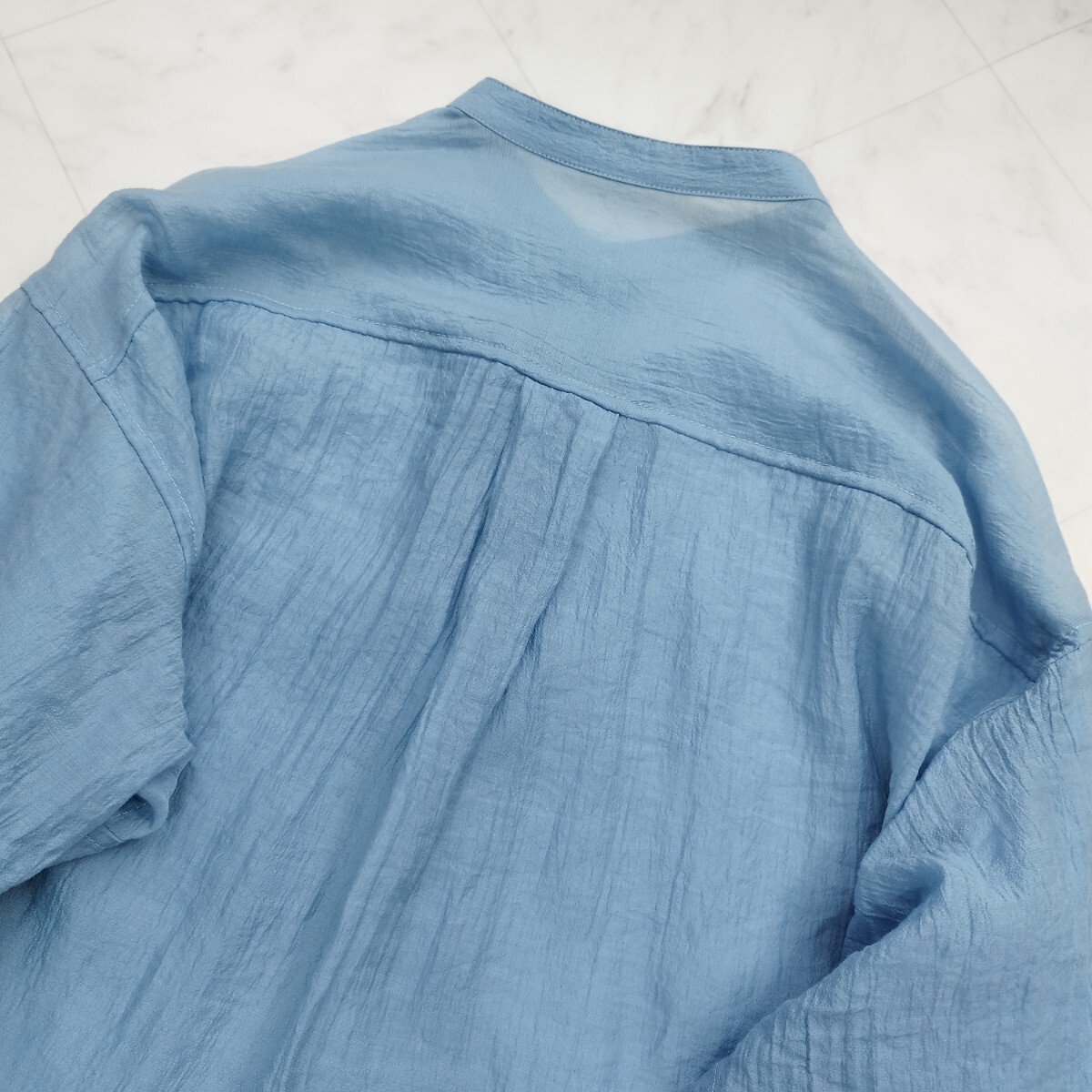 美品 フリークスストア バンドカラー シアーシャツ ライトブルー 青 ゆったり