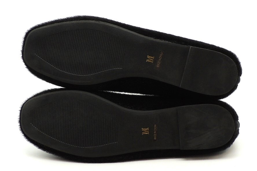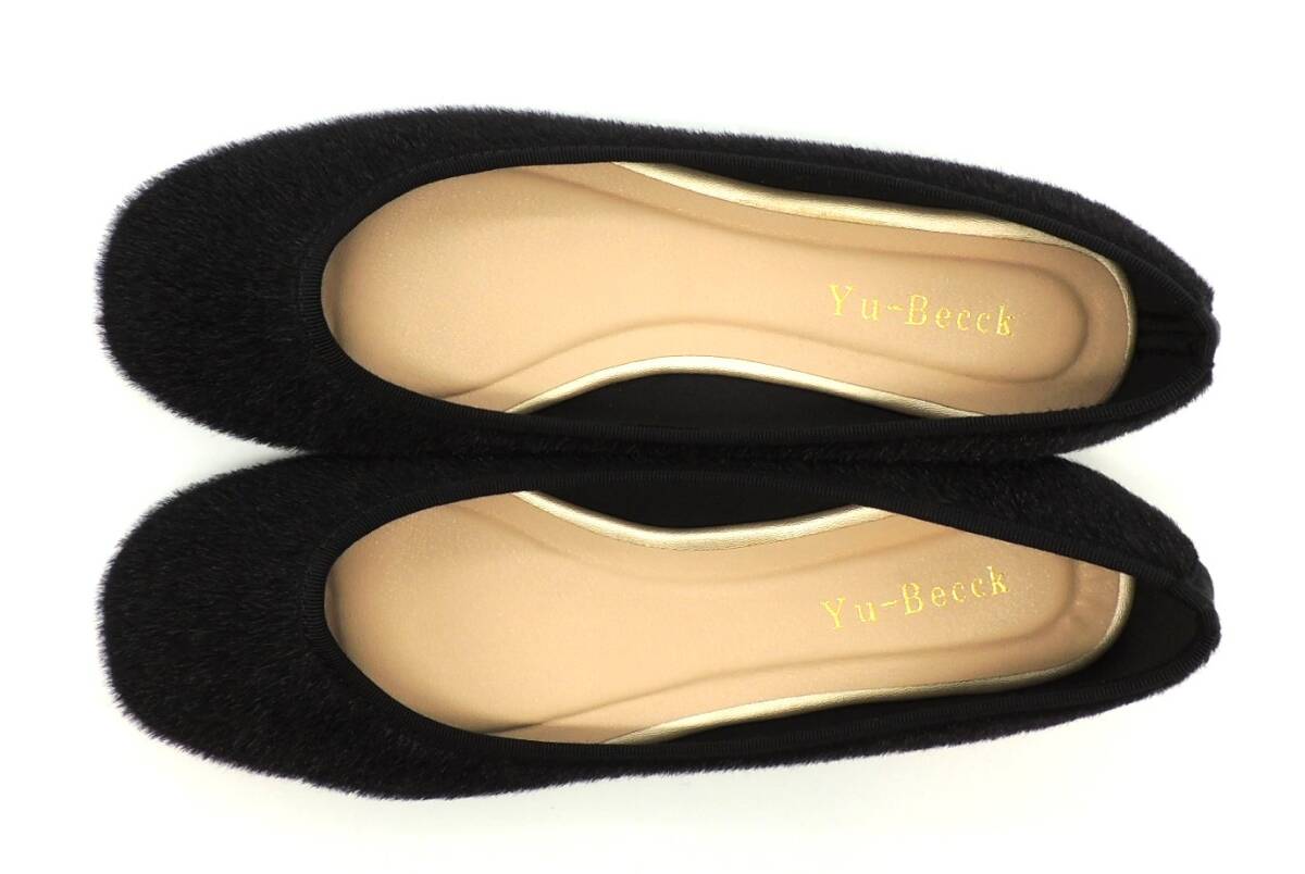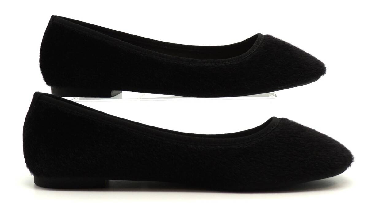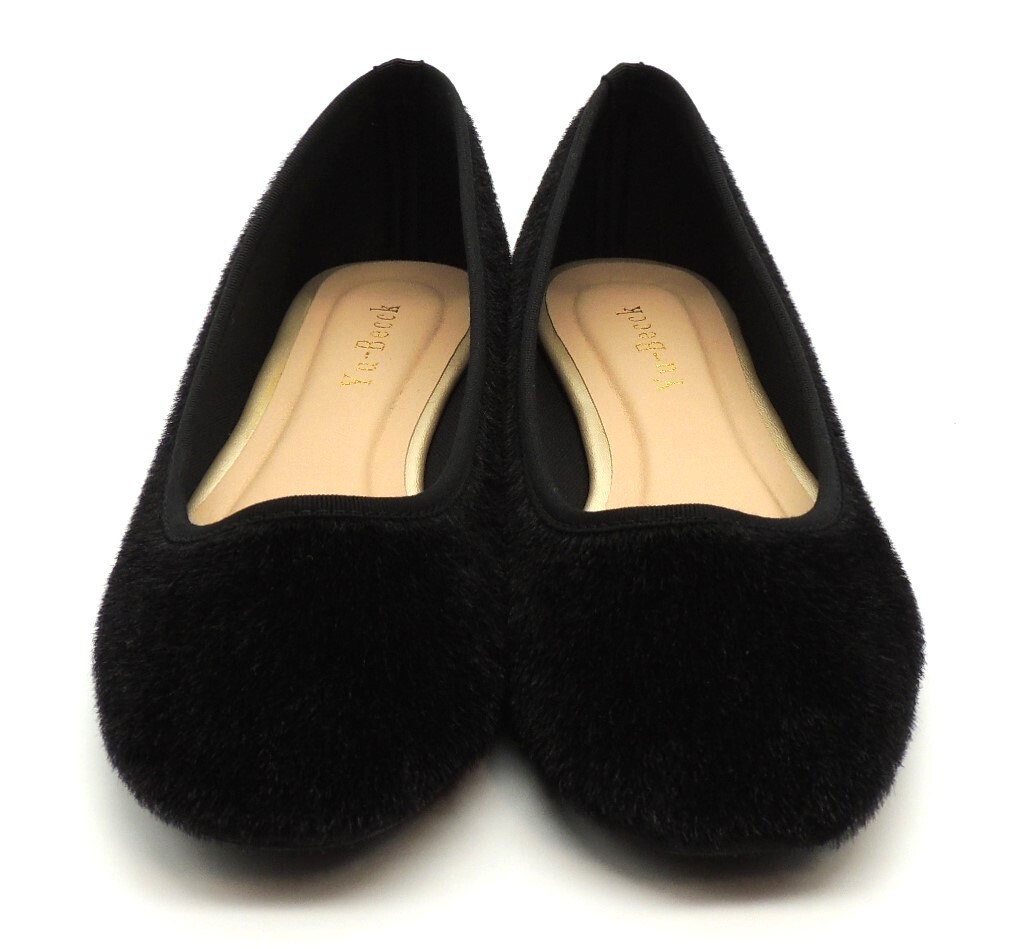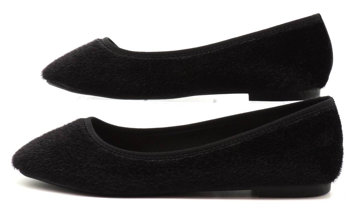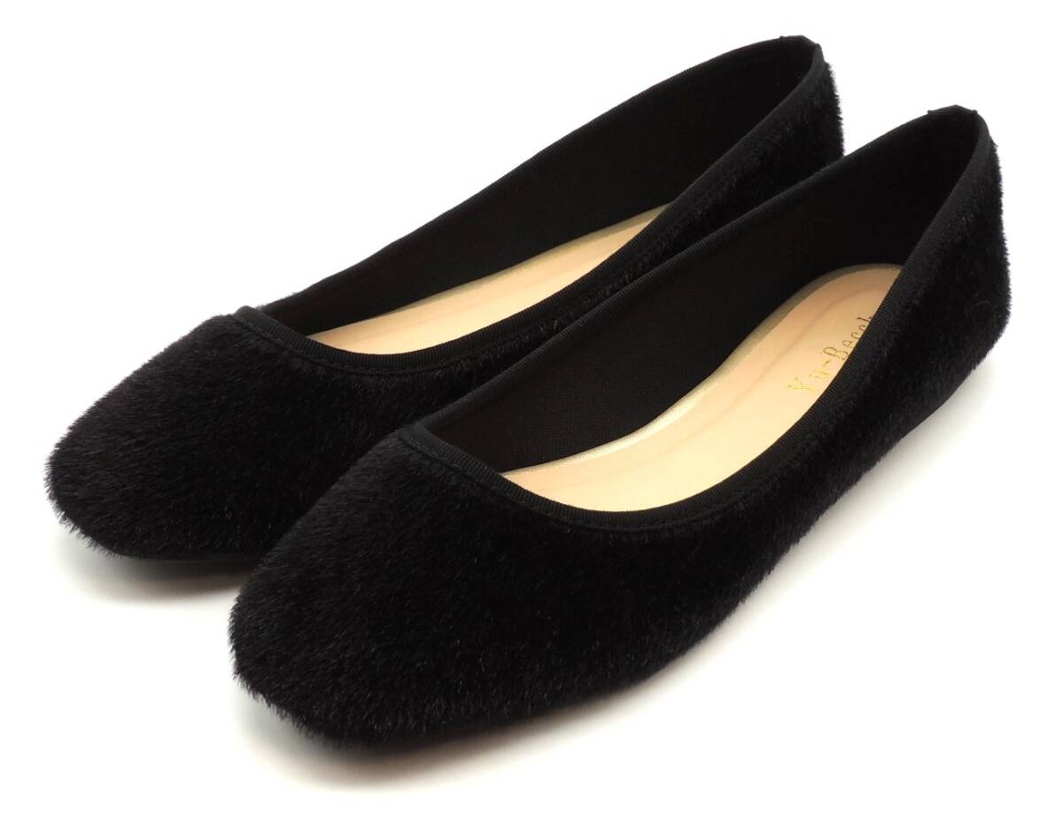 秋先取り レディ-ス パンプス スクエアトゥ フラット ハラコ風 バレエシューズ FA2276 ブラック LL(24.5-25.0cm)