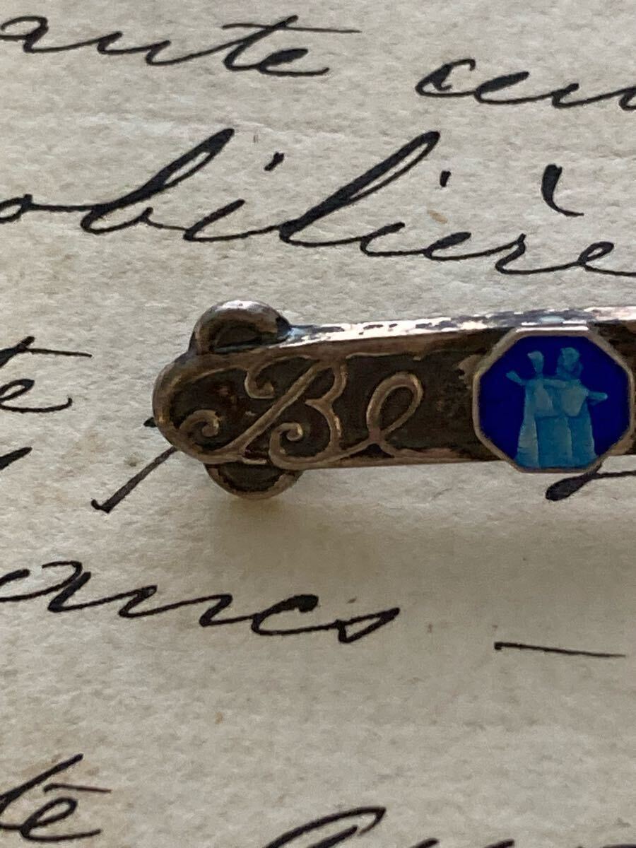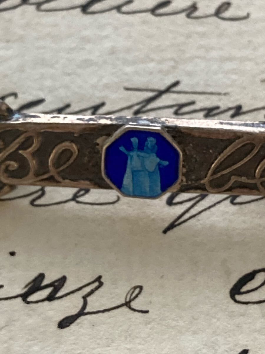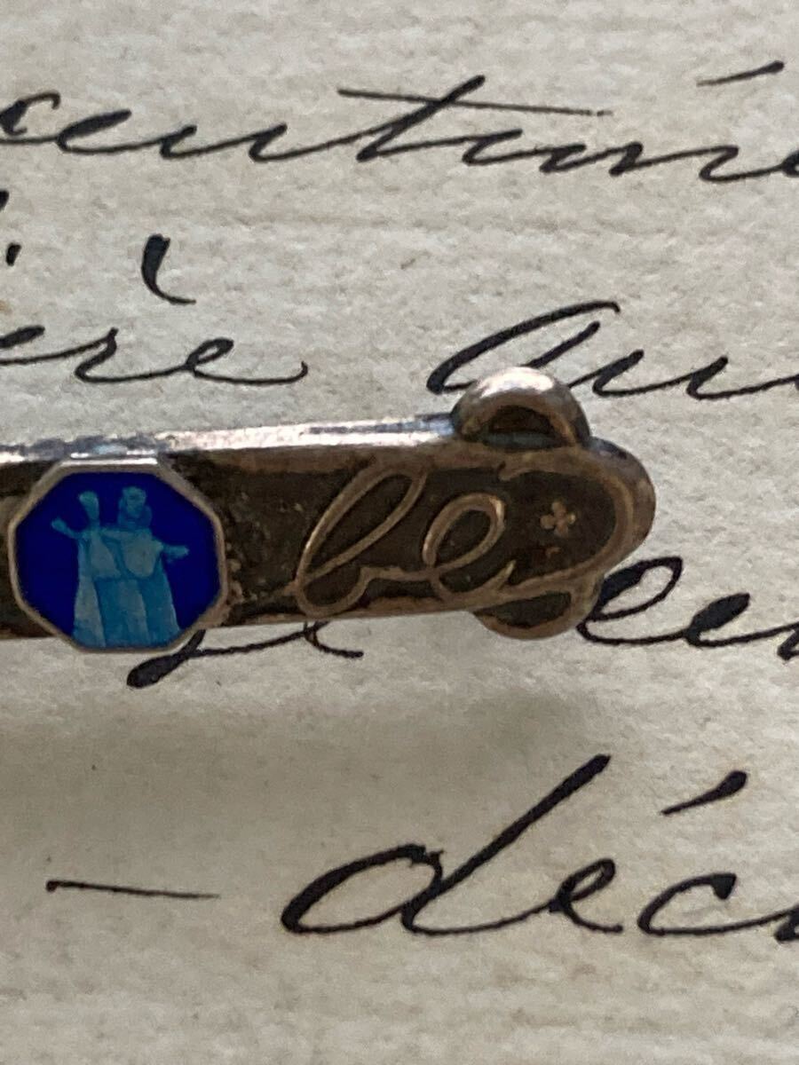 フランスアンティークヴィンテージのマリアのメダイのついたべべピンです。