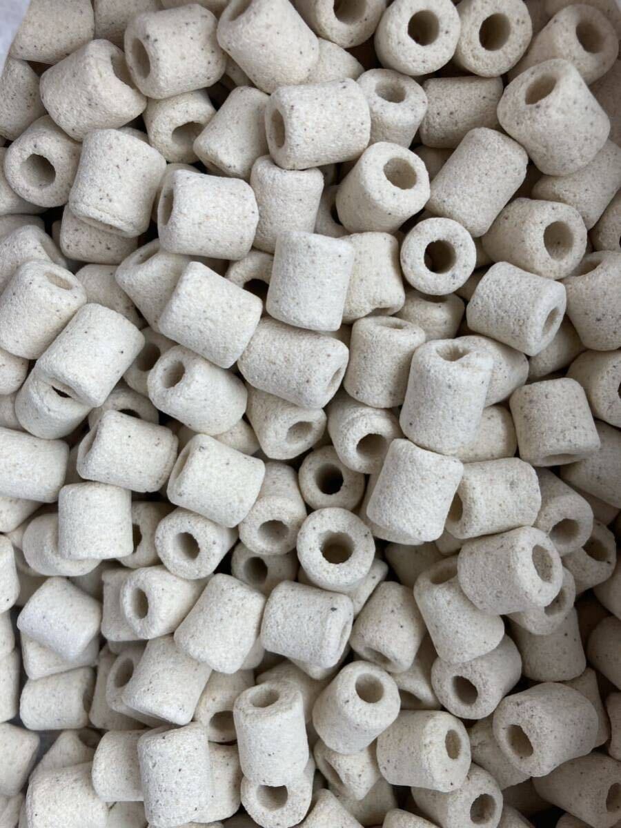 こちら上部濾過、外部フィルター等使用、淡水/海水両方に対応できる多孔繊維セラミックリング濾過材です。