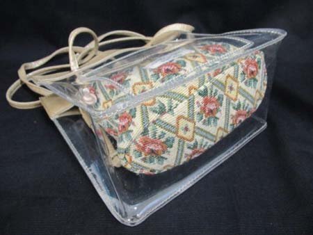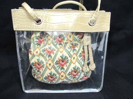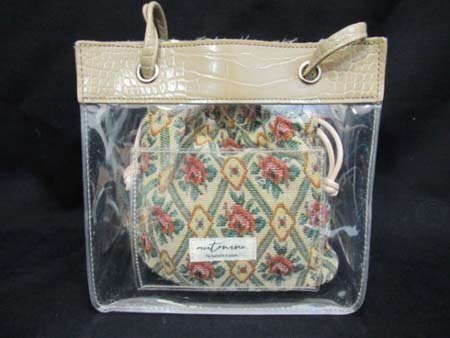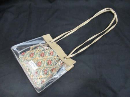 ウィゴー WEGO クリアロングショルダートートバッグ 花柄巾着付 高19.5×底幅20×底厚み10.5cm 本体のみ 中古 ■