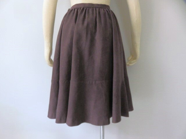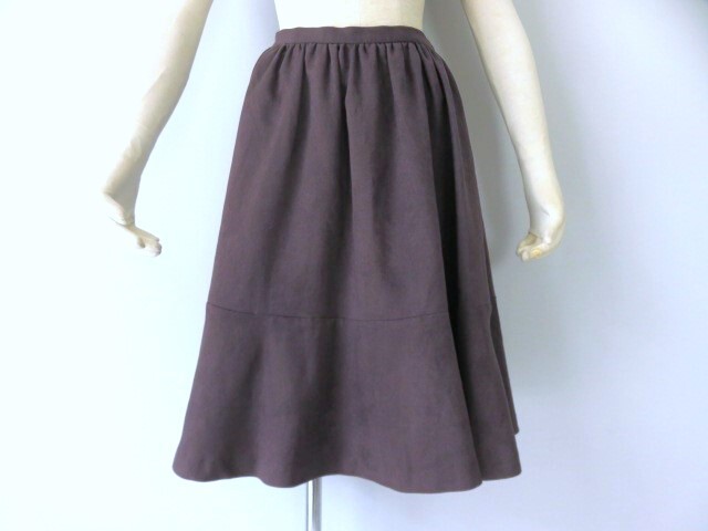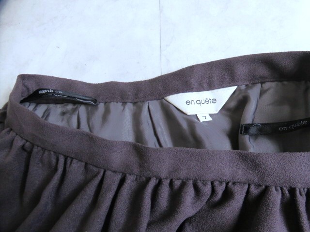 ■新品同様【en quete】エフデ・アンケート 高級 人口皮革 ギャザー スカート 7号 S グレー 旭化成素材 送料185円 b200