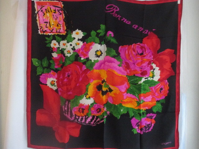 ☆(3)ウンガロ スカーフ 黒地・オレンジ・ピンク・グリーン他 ☆