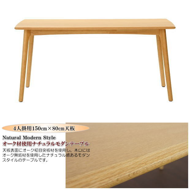 | 【商品名】 | ナチュラルモダンのオーク材使用150cm幅長方形ダイニングテーブル(ナチュラル色) | |