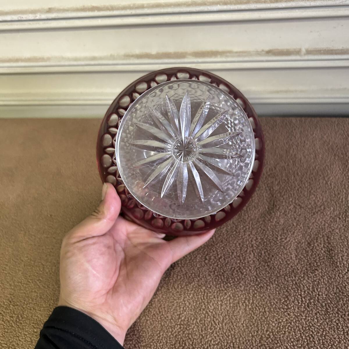 CF20★カットグラス★ 置物 インテリア 工芸品 高さ11.5㎝ 直径16㎝