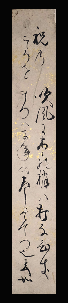 金砂子散紙本肉筆未装短冊1枚 作品寸法:36.2cm x 6.0cm 商品状態:実際の品を画像にてお確かめ下さい。 ★本品は印刷ではなく肉筆の作品です。 ★本品は真作保証の作品です。 出品作品の読みにつきましては、ご落札頂いた後のご依頼についてのみ、出来るだけ対応させて頂きます。 玄如(げんにょ) 1778-1833。江戸時代後期の歌人。 安永7年生まれ。家は備前岡山の豪商赤穂屋の一族。京都で香川景樹(かげき)の家僕となり,和歌をまなぶ。のち出家して各地を放浪。晩年は京都の大原,嵯峨(さが)などにすんだ。桂門(香川景樹の門人)十哲のひとり。天保(てんぽう)4年1月7日死去。56歳。俗名は若林秋長。号は任有亭,己桃軒。法名ははじめ善勝。 出典:講談社『デジタル版 日本人名大辞典+Plus』 |