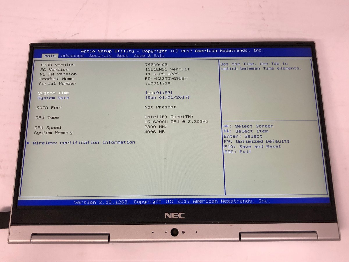 ジャンク/ NEC PC-VK23TGVG9UEY Intel Core i5-6200U メモリ4.1GB ストレージ無し 【K15178】