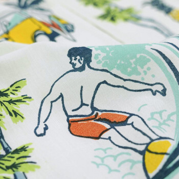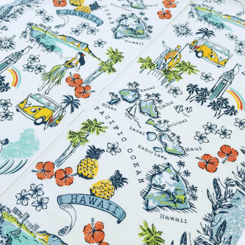| 賑やかで楽しい雰囲気のレトロなハワイアン柄がプリントされたのれん。細部にわたるイラストが魅力的で、一つ一つ楽しみながら見ることができます。明るいハワイアンテイストが、お部屋を爽やかに演出します。 【布製品お取り扱いについて】 織りから染色まで昔ながらの伝統的手法で作られております。 手作業の工程が多いため、日本の機械工業製品と比べると一見粗野に感じられる部分も見受けられます。 生産現場の監督者、職人たちと話し合い、生産工程上避けられないものに関しましては、正規品として取り扱いさせていただいております。 現地の職人たちがこつこつと手作業で作り上げた布製品の特性をご理解の上、人の手が作り出す表情の違い、素朴な風合いをお楽しみください。 【お手入れ方法】 洗濯時に色落ちする場合がございますので、漂白剤及び漂白剤入りの洗剤のご使用は避け、他の物と分けて単独でお洗いください。 商品によっては2種類以上の繊維で織りこまれたものや、刺繍・ミラーなどを施しているものがあります。洗濯表示をご確認ください。 長時間濡れたまま放置すると移染する恐れがございます。洗濯後は形を整えてすぐに陰干ししてください。 生地の特性上、洗濯後多少縮むことがございます。 手作り品の為、サイズが表示と異なる場合がございます。 インド綿特有のにおいが気になる方は、風通しの良い場所で陰干ししてからご使用ください。 【色落ち】 インド綿製品は色落ちしやすいという特性があります。摩擦や水濡れ、汗によって色が移る可能性があります。 雨天でのご使用、薄い色の衣服、バッグ、ソファー、車のシート等への色移りには十分ご注意ください。 【色差】 染色後の乾燥の際に天候や湿度の変化によって、1枚1枚の発色に差が出る場合がございます。 |