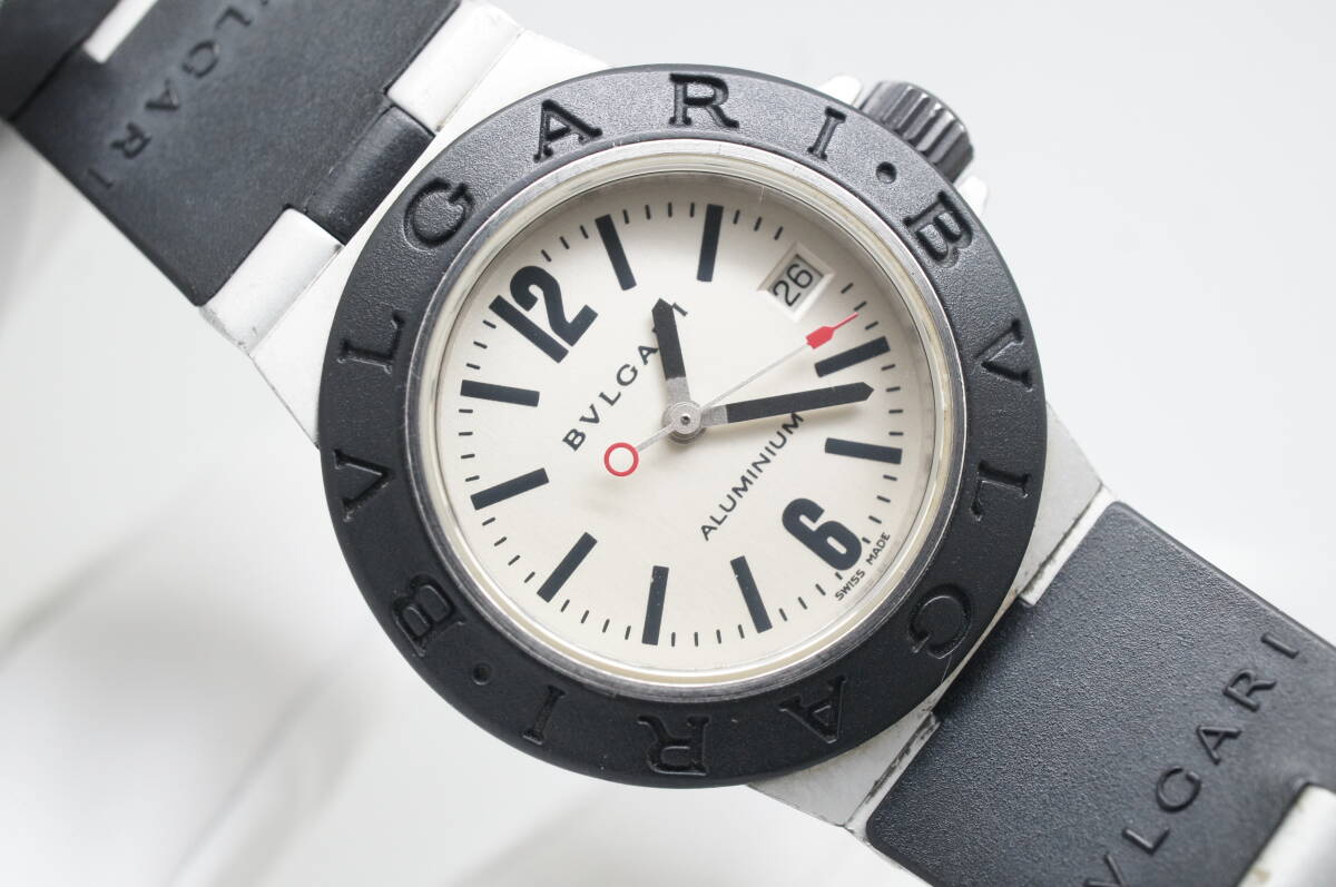 E83●作動良好 BVLGARI ブルガリ ALMINIUM アルミニウム AL29A デイト レディース腕時計 シルバー×ブラック黒 お洒落 クォーツ