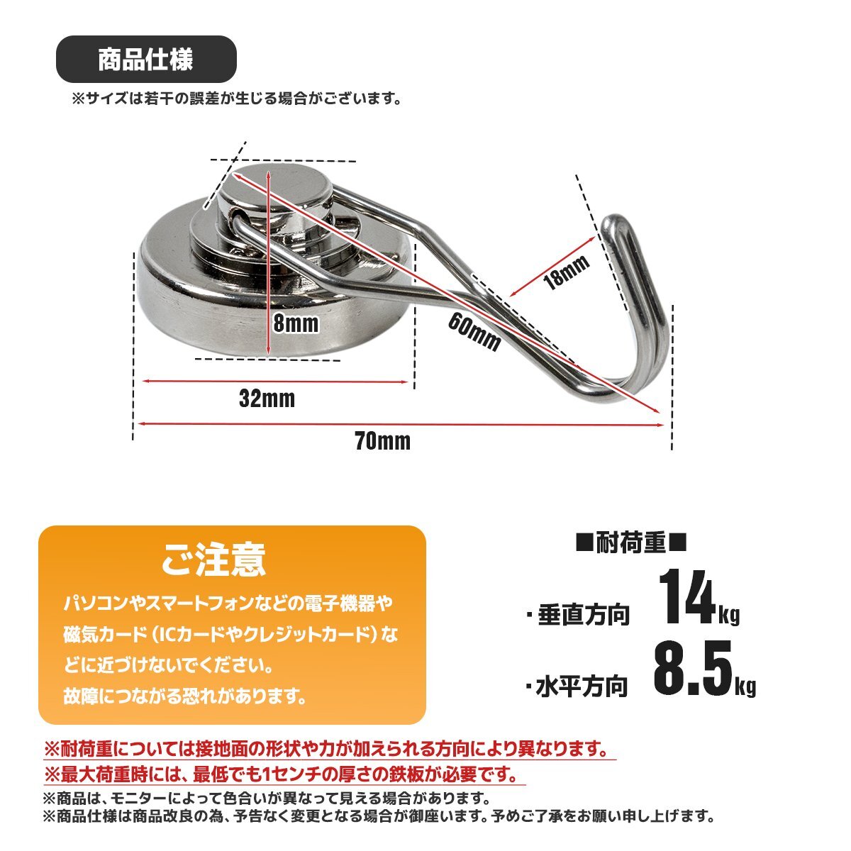 【全国一律送料無料】2個セット◆メガリング 超強力マグネットフック 磁石フック 耐荷重:垂直14.6kg/ 水平8.5kg 直径32mm フックタイプ