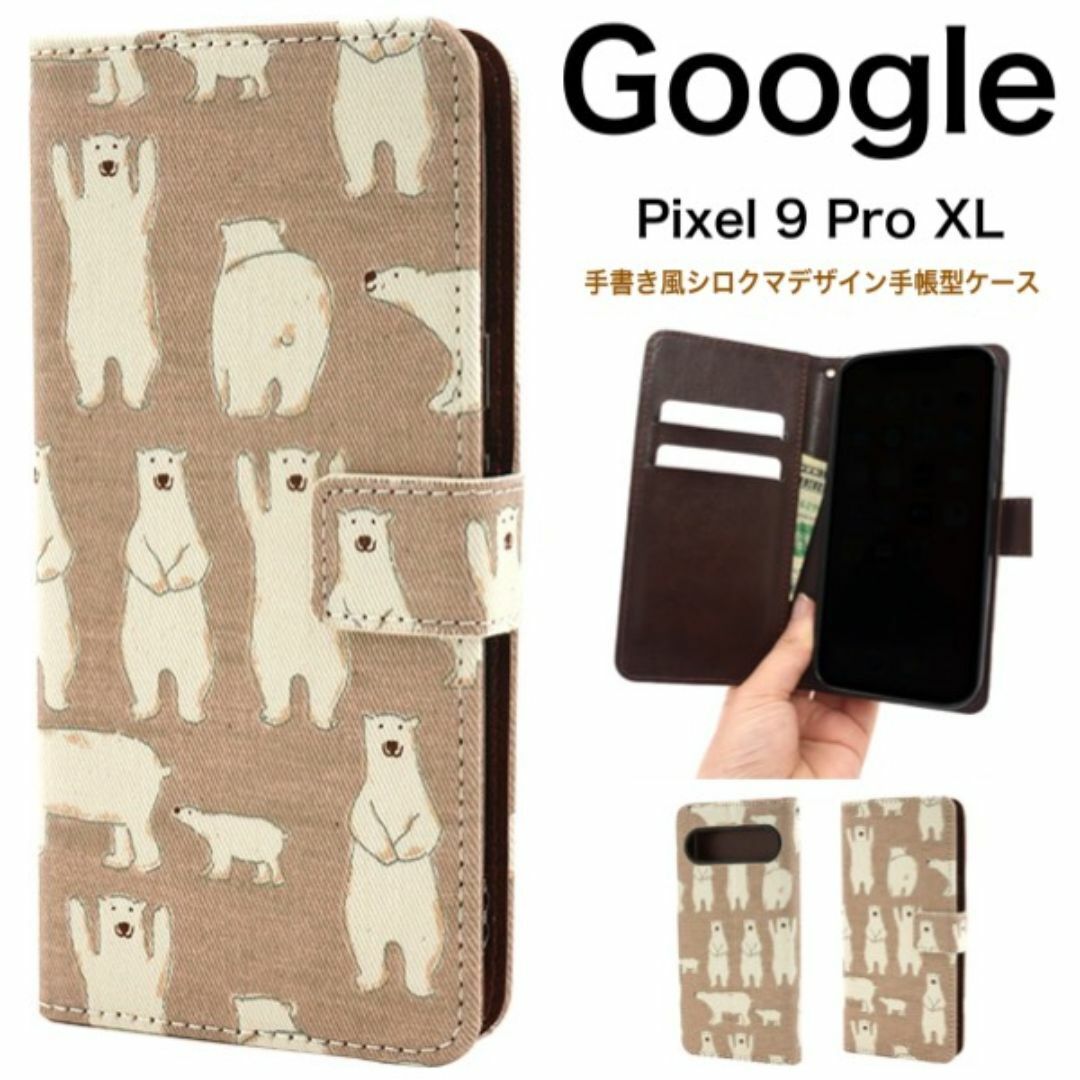 Google Pixel 9 Pro XL用手書き風シロクマデザイン手帳型ケース