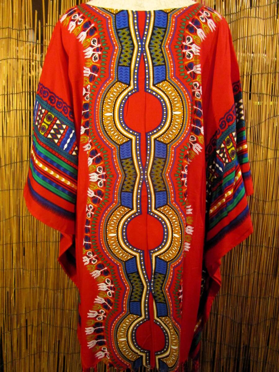 ⑧新品*男女兼用*レーヨン素材*アフリカンプリント*ダシキ*ゆったりサイズ*フリンジ*ポンチョ