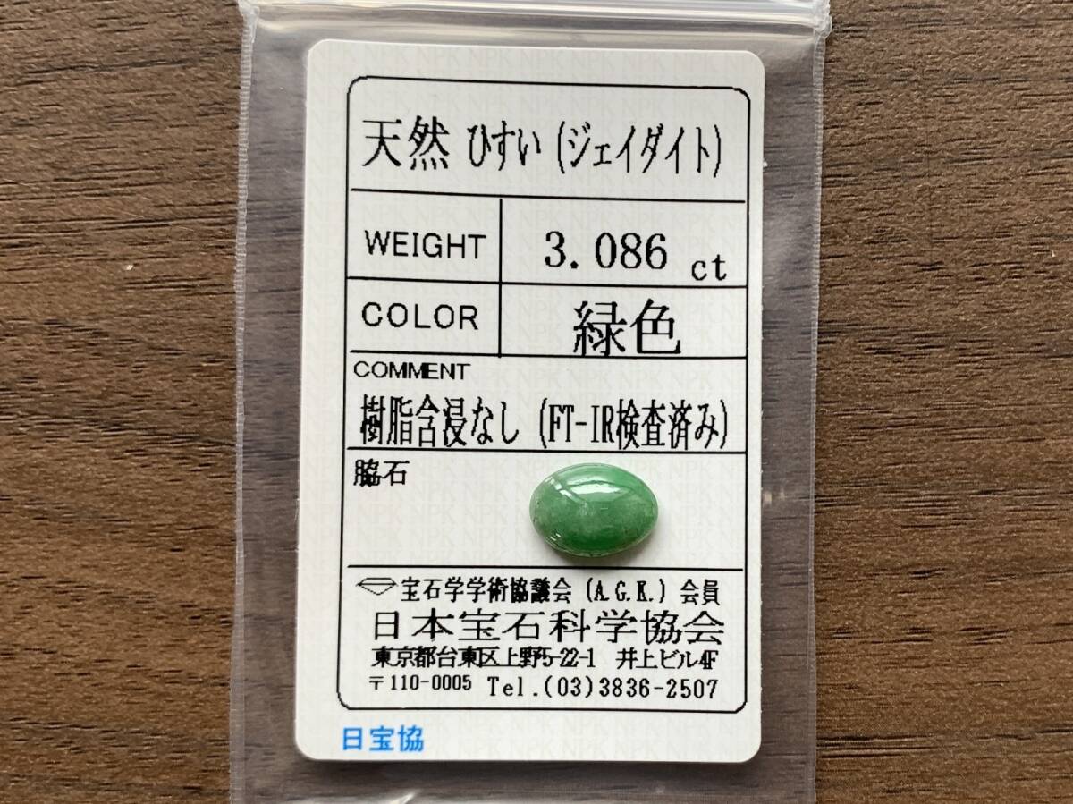 | 商品説明 | たくさんの商品の中からご覧頂きましてありがとうございます。 ★ご質問やオファー金額がある際はお気軽にコメントください。出来る限り頑張ります! ※数が多いのも大丈夫です。 ★ギフトラッピングを無料で承ります。 ご希望の場合は、ご購入時にお知らせ下さい。 写真は、室内で撮影しております。 被写体となるものは撮影ライトの映りこみがありますのでご理解頂ければと思います。 商品状態は出来る限り画像で確認できるように撮影に努めておりますので、お写真でご確認いただければと思います。 ご不明な点は入札前にご質問宜しくお願いいたします。 ◎出品詳細 宝石ソーティング付き 天然 ひすい(ヒスイ 翡翠)(ジェイダイト) 3.086ct 11.3×8.3×4.0 鑑定機関:日本宝石科学協会 |