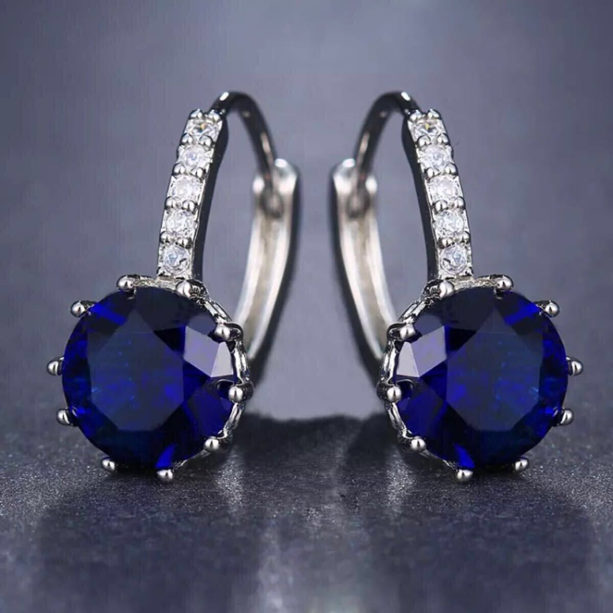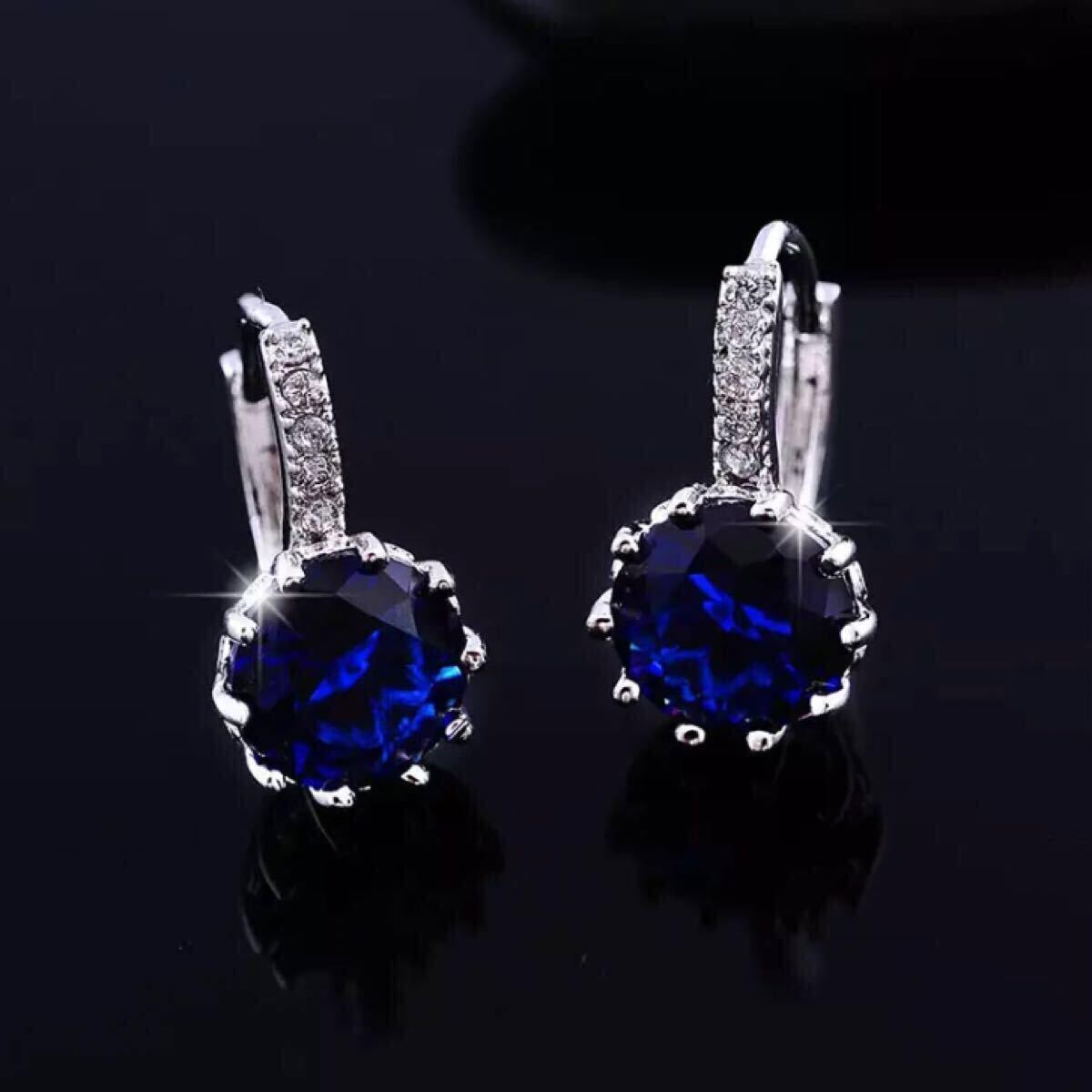 大粒のAAACZサファイアに、小さなCZダイヤモンドをあしらった華やかなピアスです。カジュアルからフォーマルまで幅広いシーンでお使い頂けます。