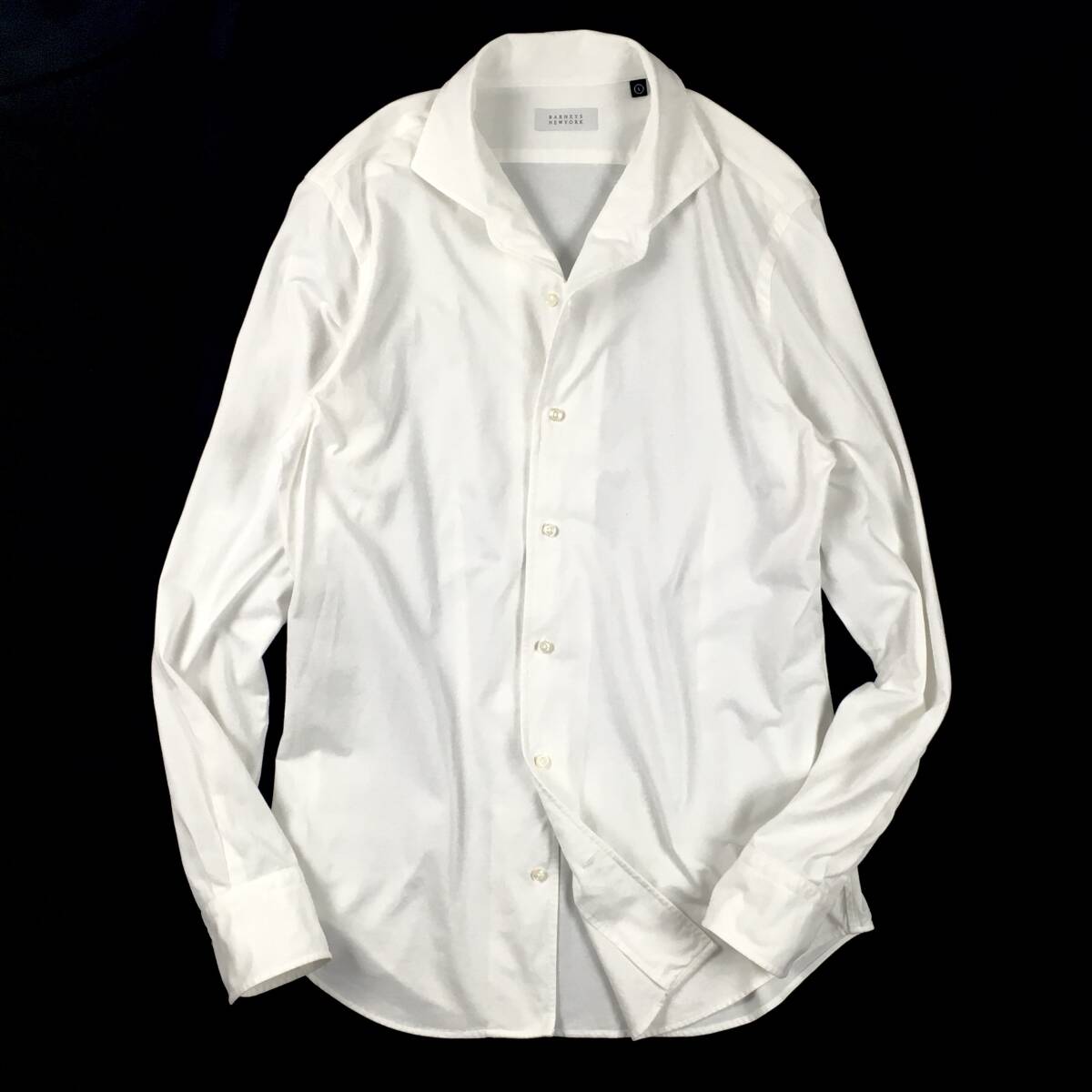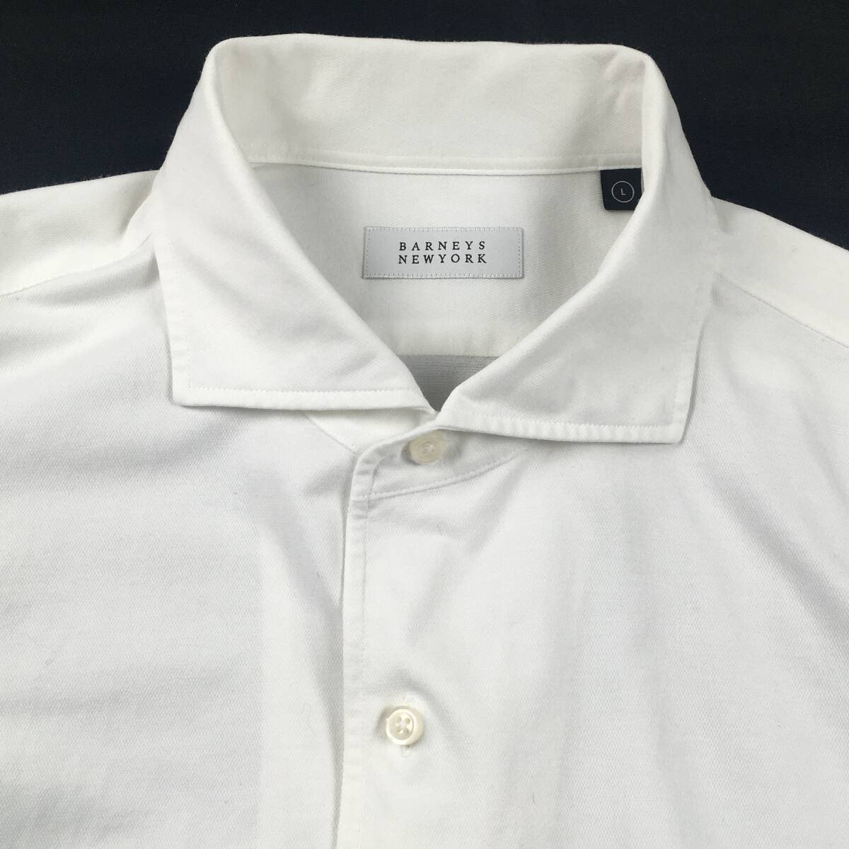 美品【BARNEYS NEW YORK/バーニーズ ニューヨーク】細身シルエット/ホリゾンタル・カッタウェイ 長袖シャツ 白シャツ L ドレスシャツ