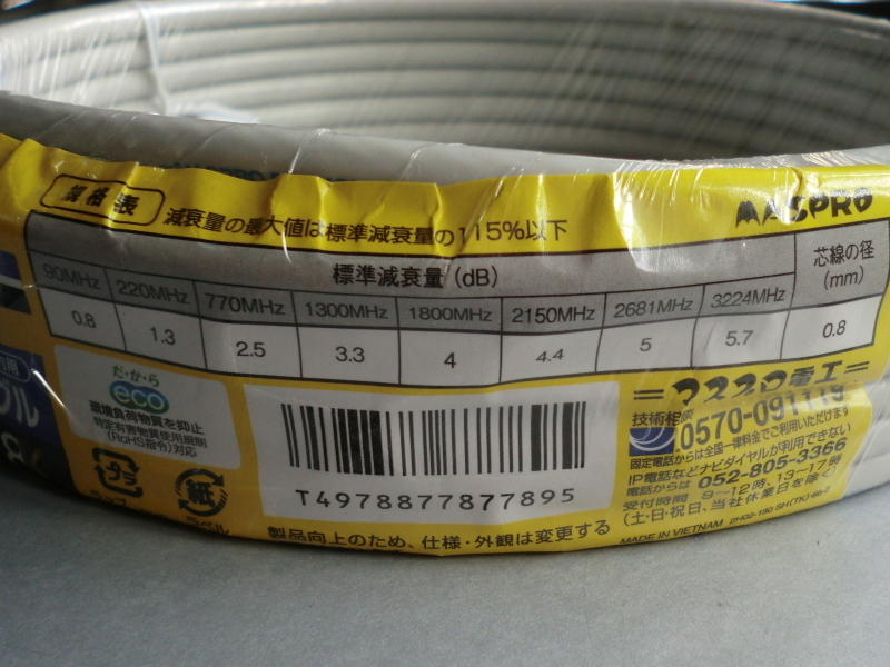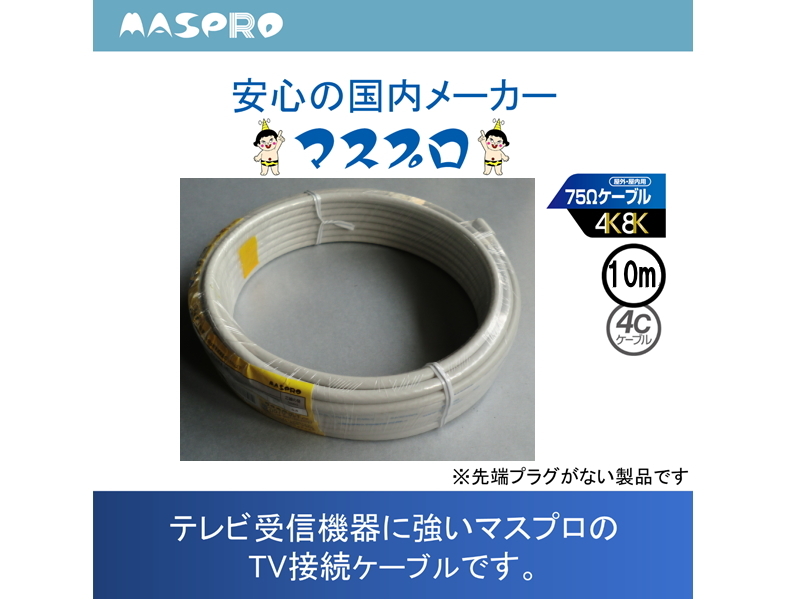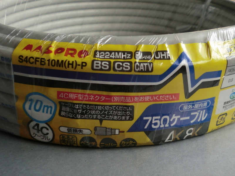 | 未使用 10m 同軸ケーブル マスプロ電工 アンテナケーブル S4CFB10M(H)-P 4C 75Ω 4K/8K |