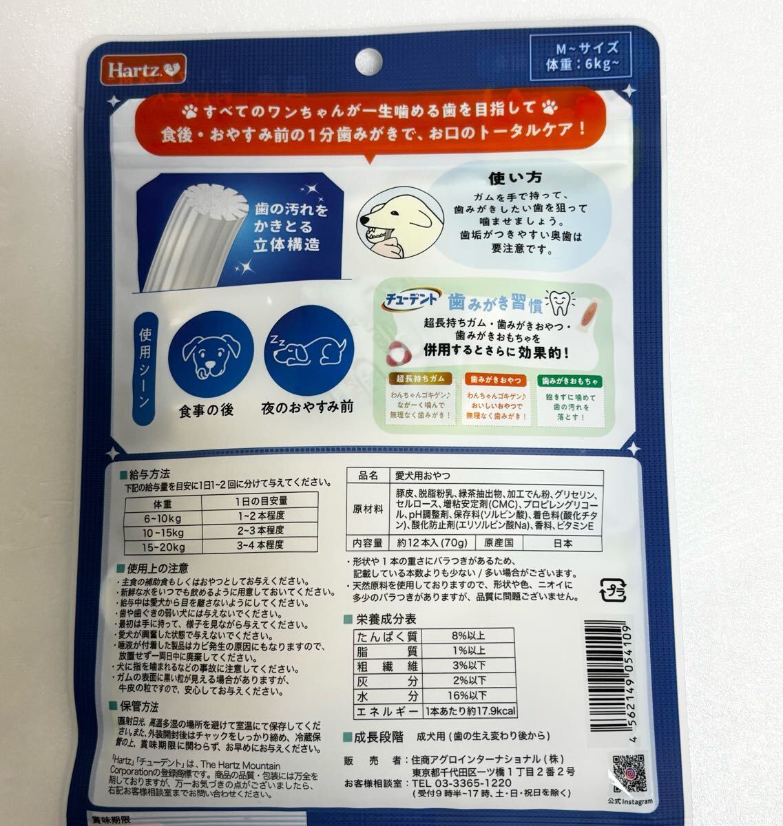 チューデント 歯みがき専用ガム オールインワン M~ ミルク風味 約12本入 70g 3袋 犬 歯みがき 犬用ガム おやつ