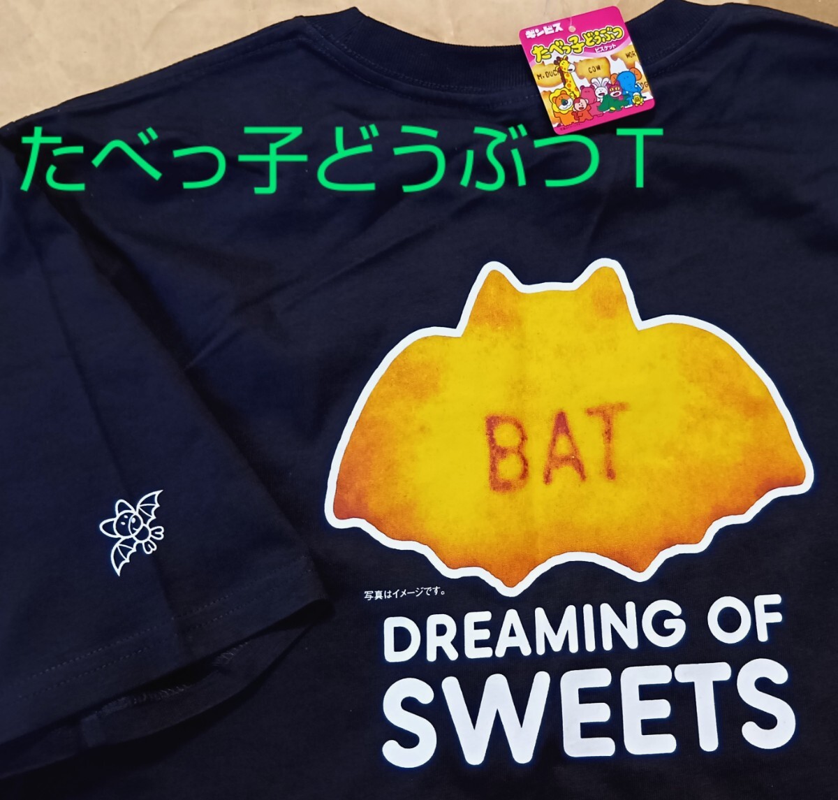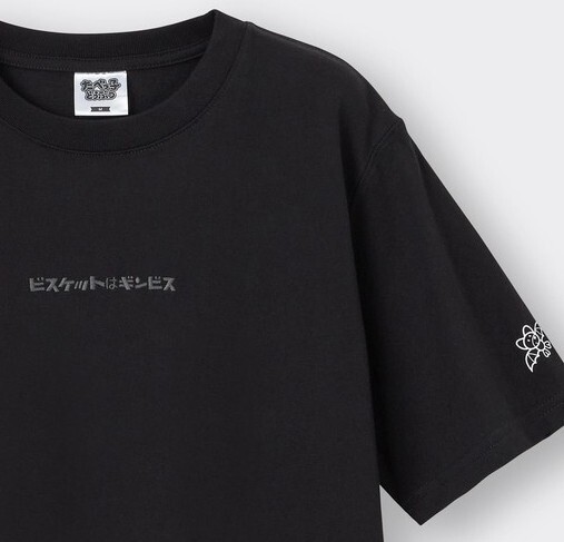 -Tシャツ前側に「ビスケットはギンビス」の刺繍、左袖にコウモリマーク。