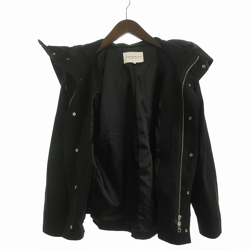 ユナイテッドアローズ A DAY IN THE LIFE ショートモッズコート パーカー ジャケット ジップアップ 6225-699-0586 S 黒 ブラック