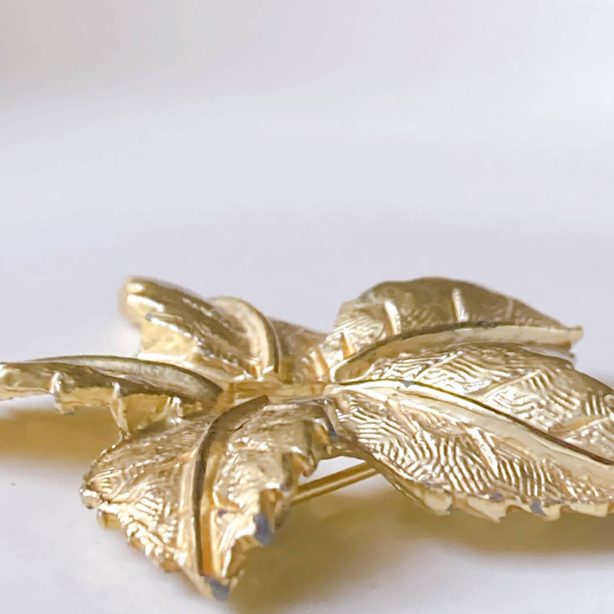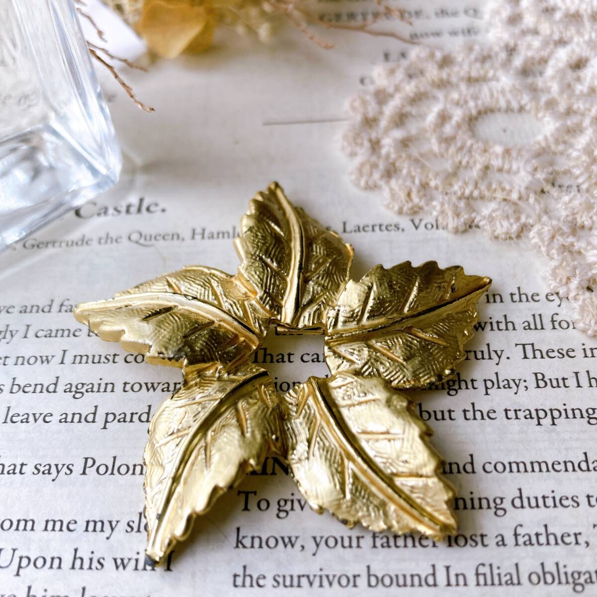 ヴィンテージブローチ ゴールド リーフ カナダ 葉っぱ☆vintage jewelry accessoriesR0555