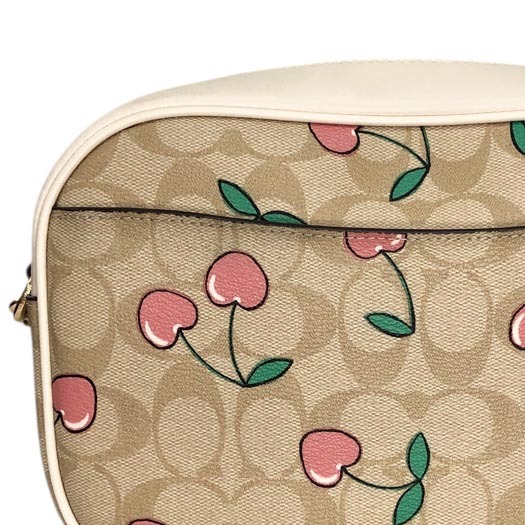 | コーチのショルダーバッグ「ジェイミー カメラバッグ (チェリー) 」です。CCシグネチャーにハートチェリーのプリントが愛らしいデザインのショルダーバッグです。 | ||
