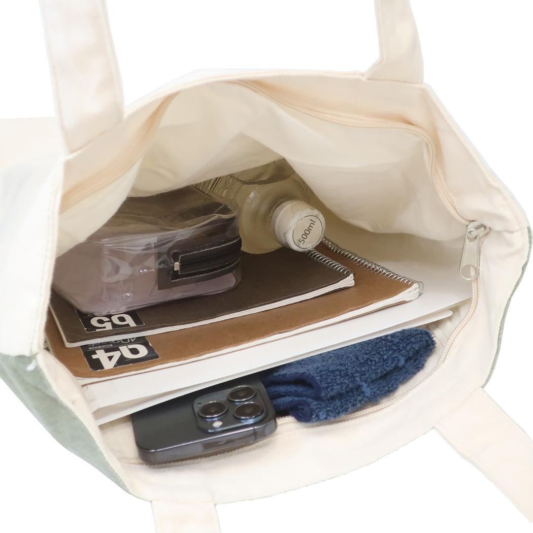 大判の雑誌もラクラク入る大きめトートバッグでおでかけしよう シンプルキュートなキャンバストートバッグシリーズこちらは大判の雑誌もすっぽり入るデイリーユースなバッグ天ファスナー付きで中身が飛び出る心配もナシ内側にもポケットが付いているので小物を分けて収納できます普段使いや旅行のサブバッグなどでじゃんじゃん使っちゃおうかわいいトートバッグいろいろあるのでお気に入りを揃えてくださいサイズ:約360x380x100mm素材:コットン(帆布)