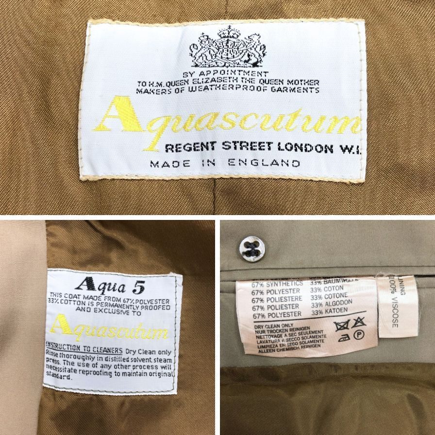 中古◆ アクアスキュータム トレンチコート 70S アクア5 ヴィンテージ イングランド製 ベージュ サイズ表記なし Aquascutum 【AFB32】