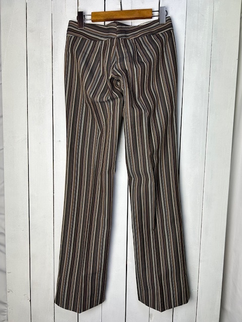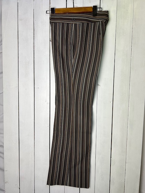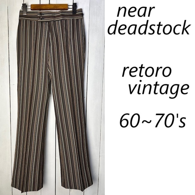 ほぼ未使用 昭和レトロ 60s~70s ストライプ フレアサマースラックスパンツ 70 薄手 焦茶 オールド ヴィンテージ 春夏秋口 ポリパンツ ベルボトム ●489