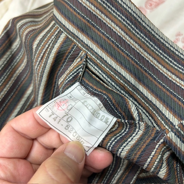 ほぼ未使用 昭和レトロ 60s~70s ストライプ フレアサマースラックスパンツ 70 薄手 焦茶 オールド ヴィンテージ 春夏 ベルボトム ●489