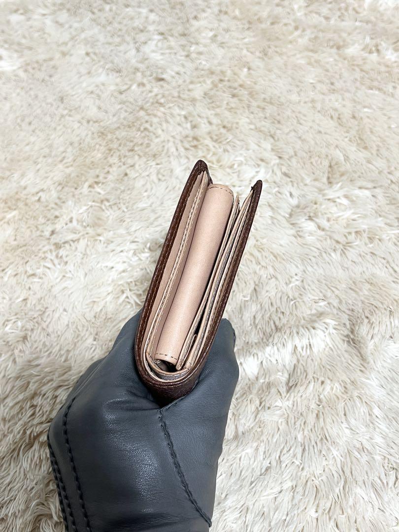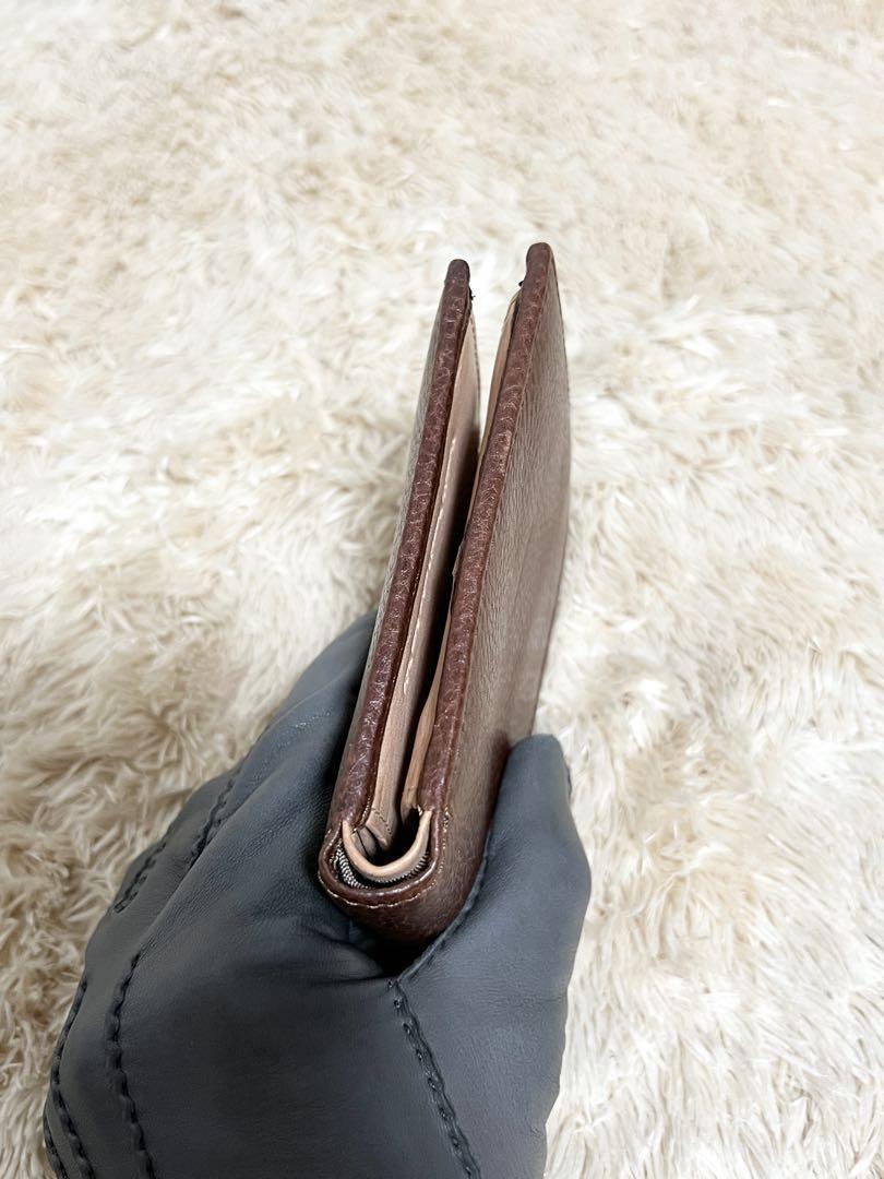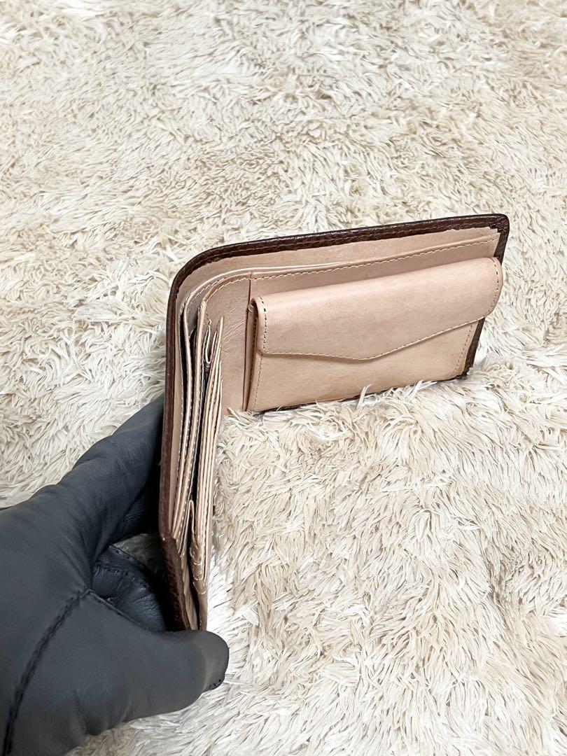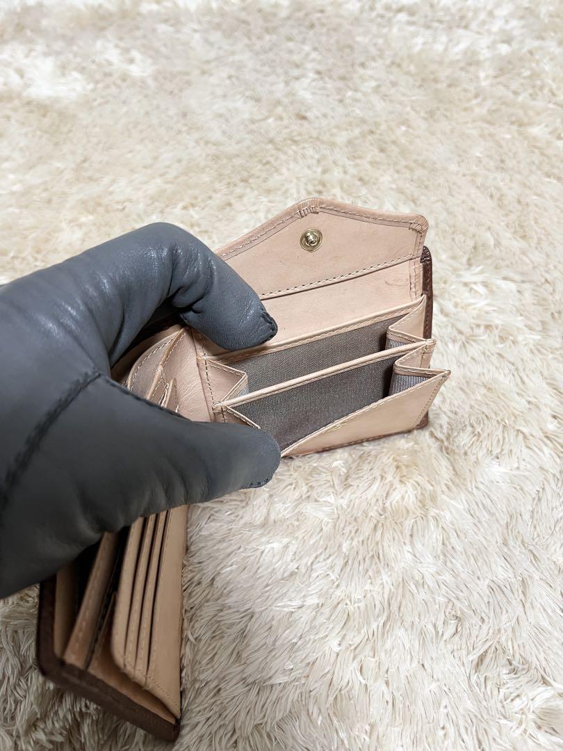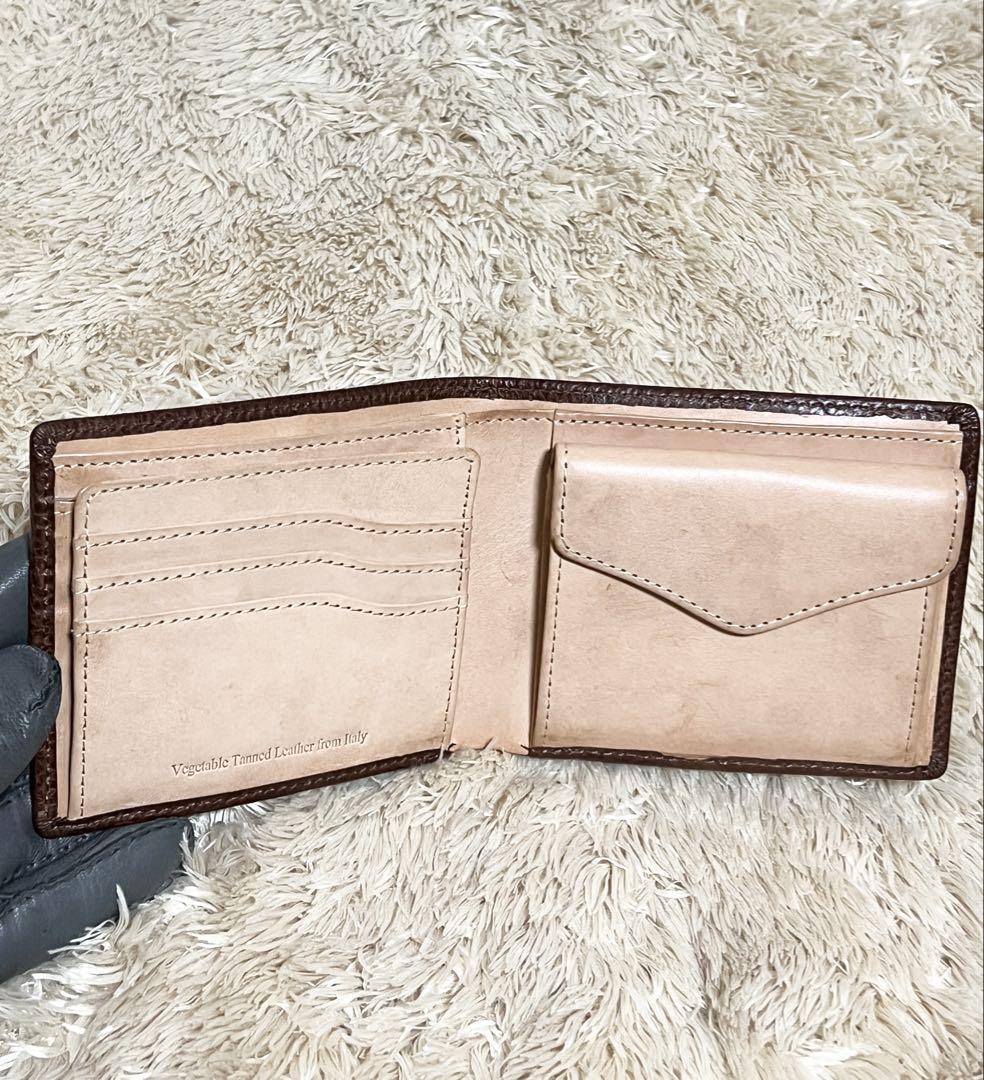 即決★美品 ベジタブルタンニンレザー 2つ折り財布★茶 ブラウン 小銭入れあり